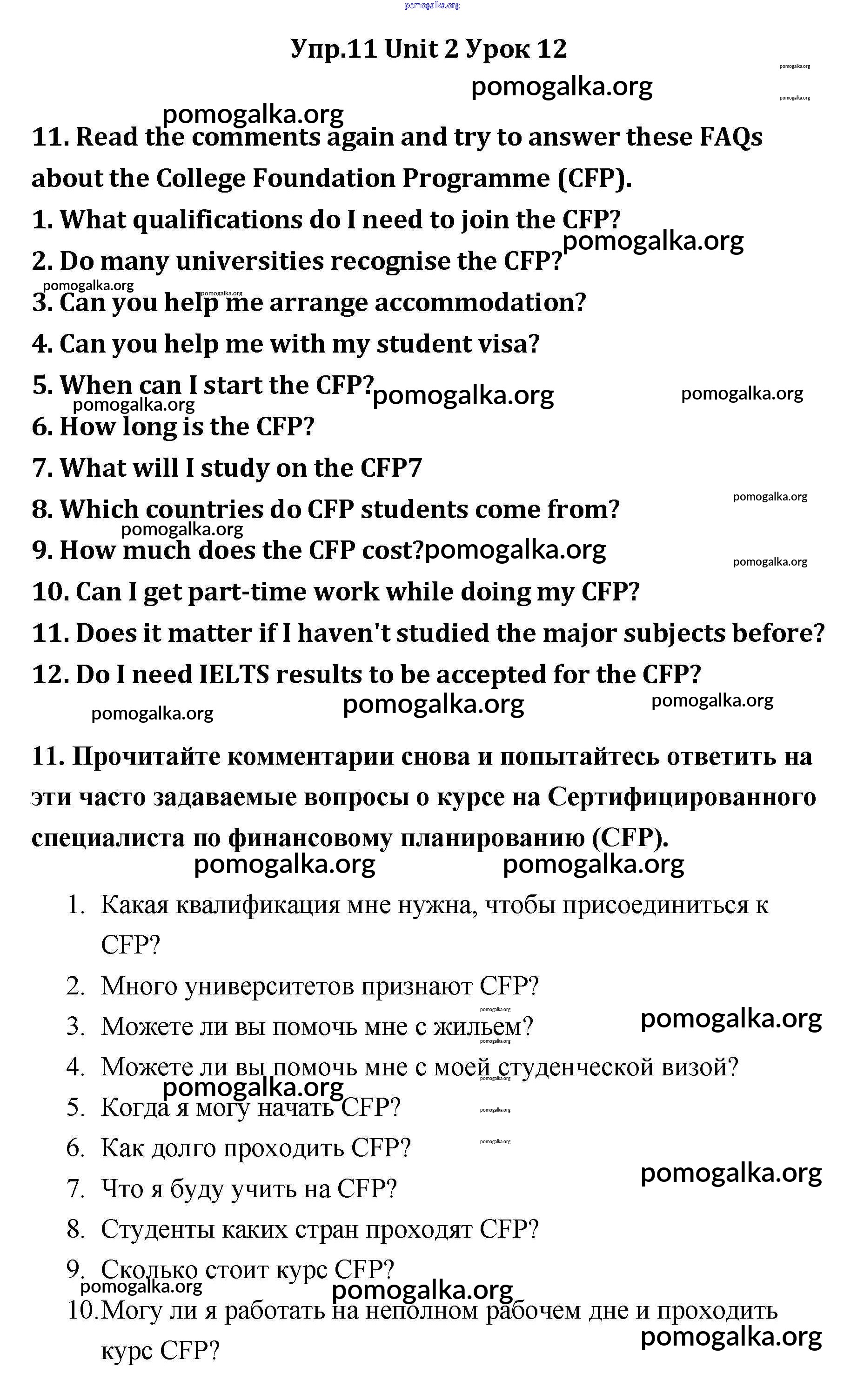 Готовые ответы - Английский язык 11 класс Кауфман - lesson 1-2 unit 2 11
