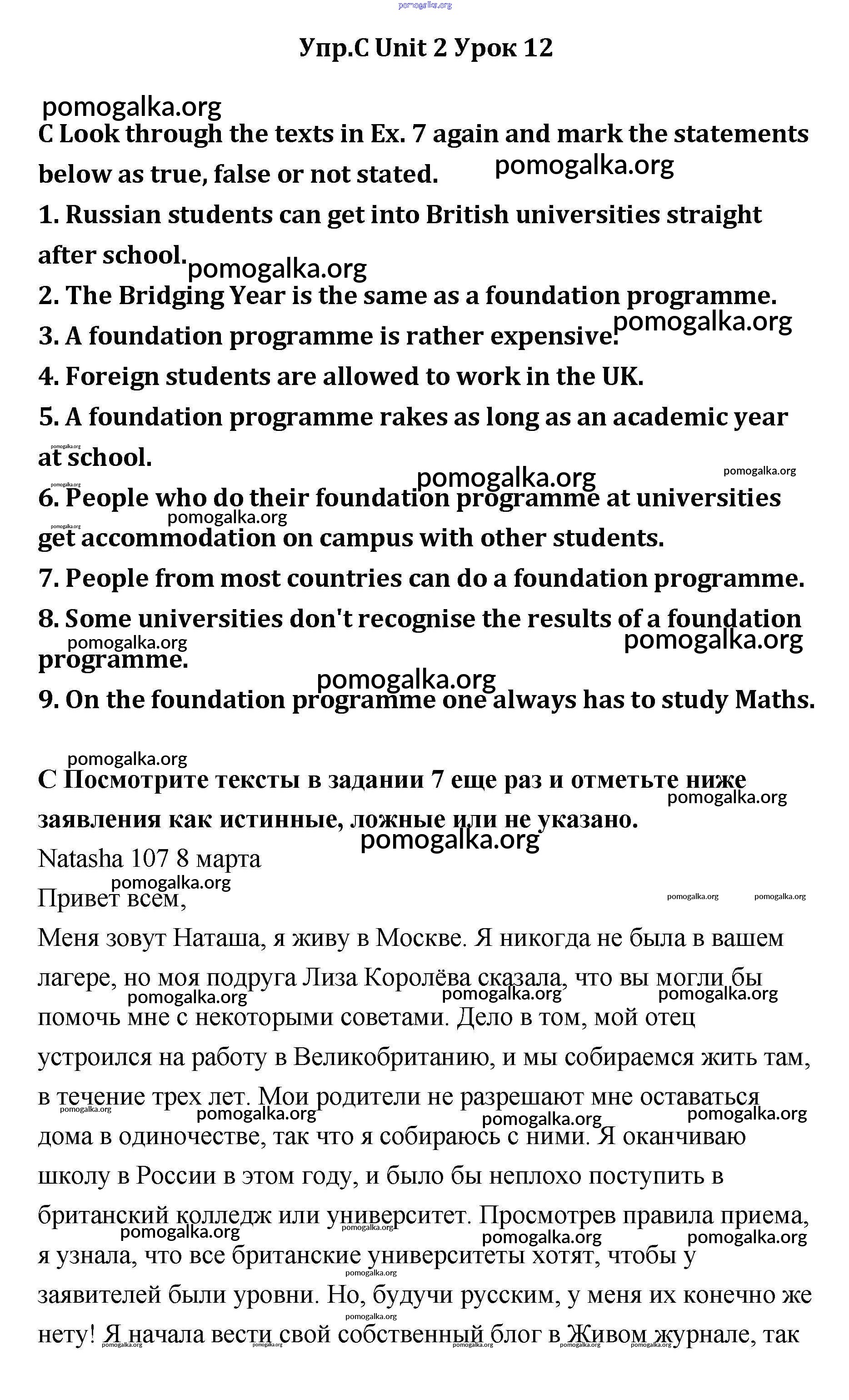 Готовые ответы - Английский язык 11 класс Кауфман - lesson 1-2 unit 2 C