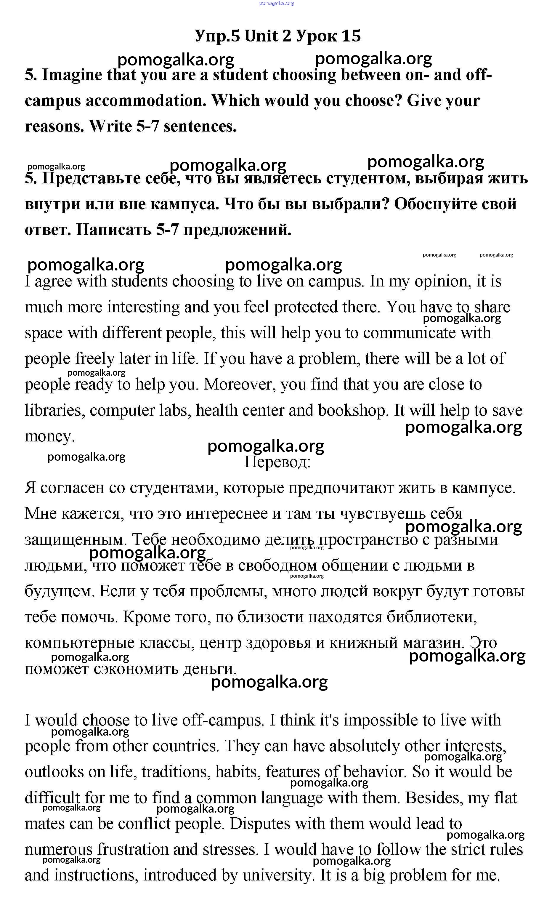 Готовые ответы - Английский язык 11 класс Кауфман - lesson 15 unit 2 5