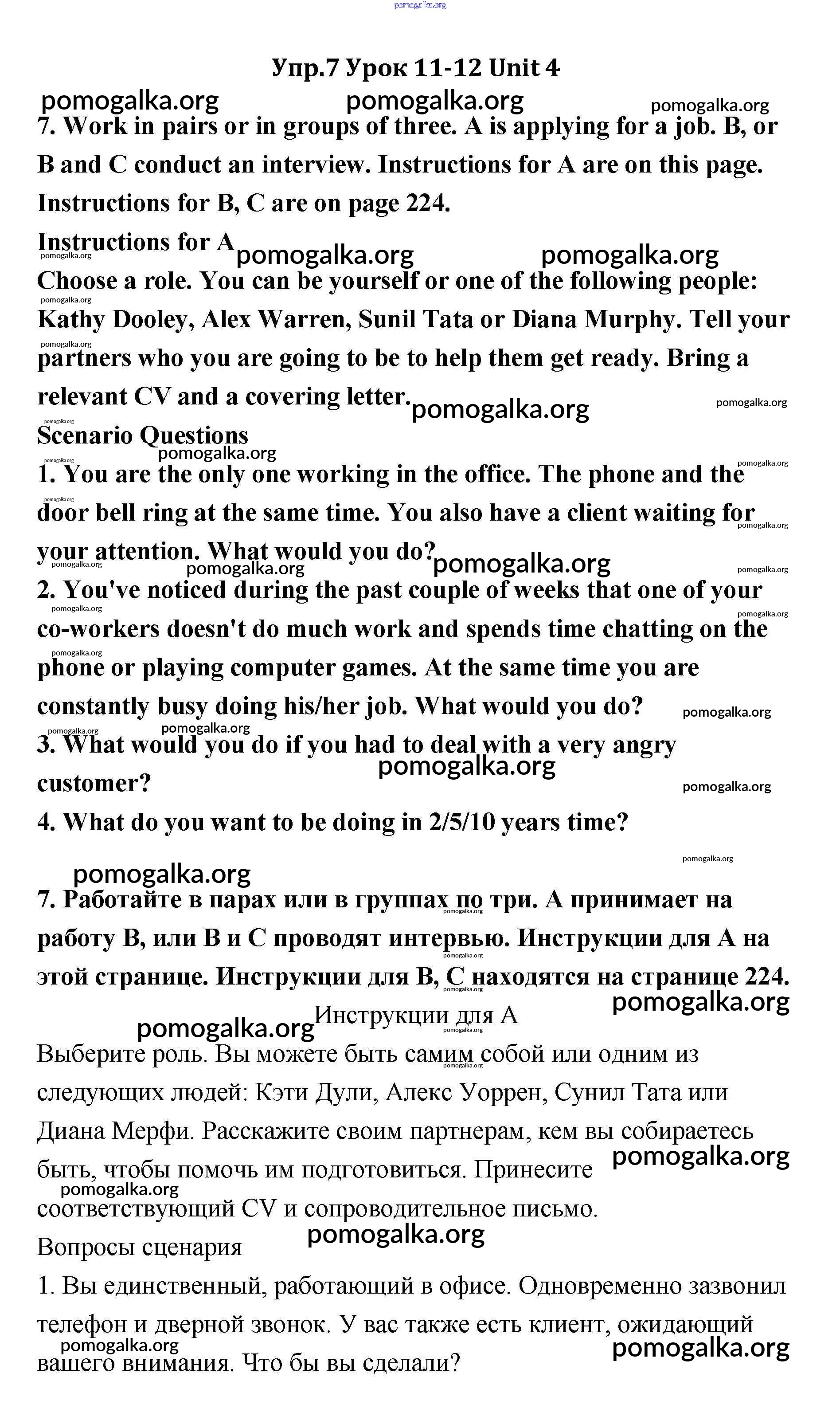 Готовые ответы - Английский язык 11 класс Кауфман - lesson 11-12 unit 4 7