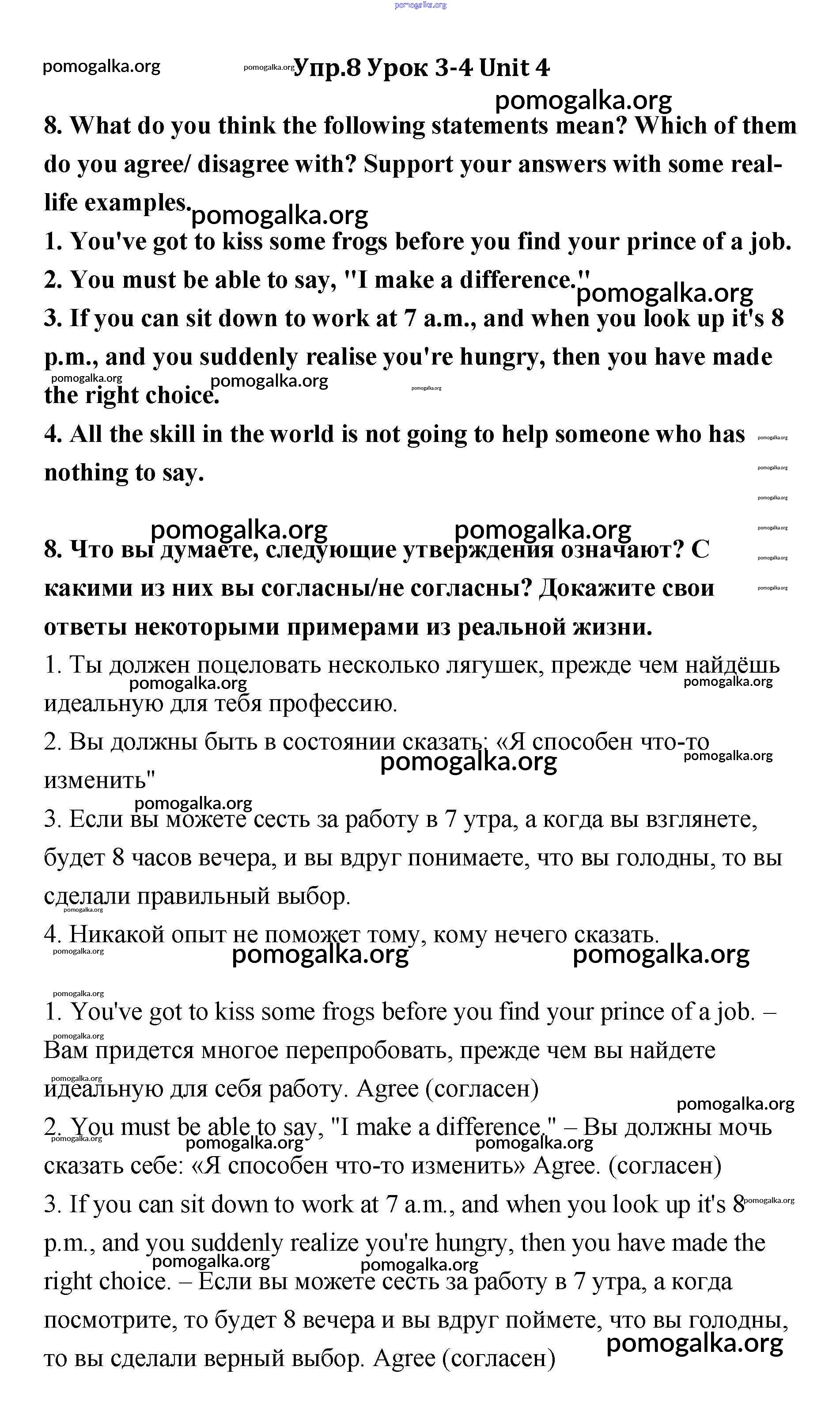 Готовые ответы - Английский язык 11 класс Кауфман - lesson 3-4 unit 4 8