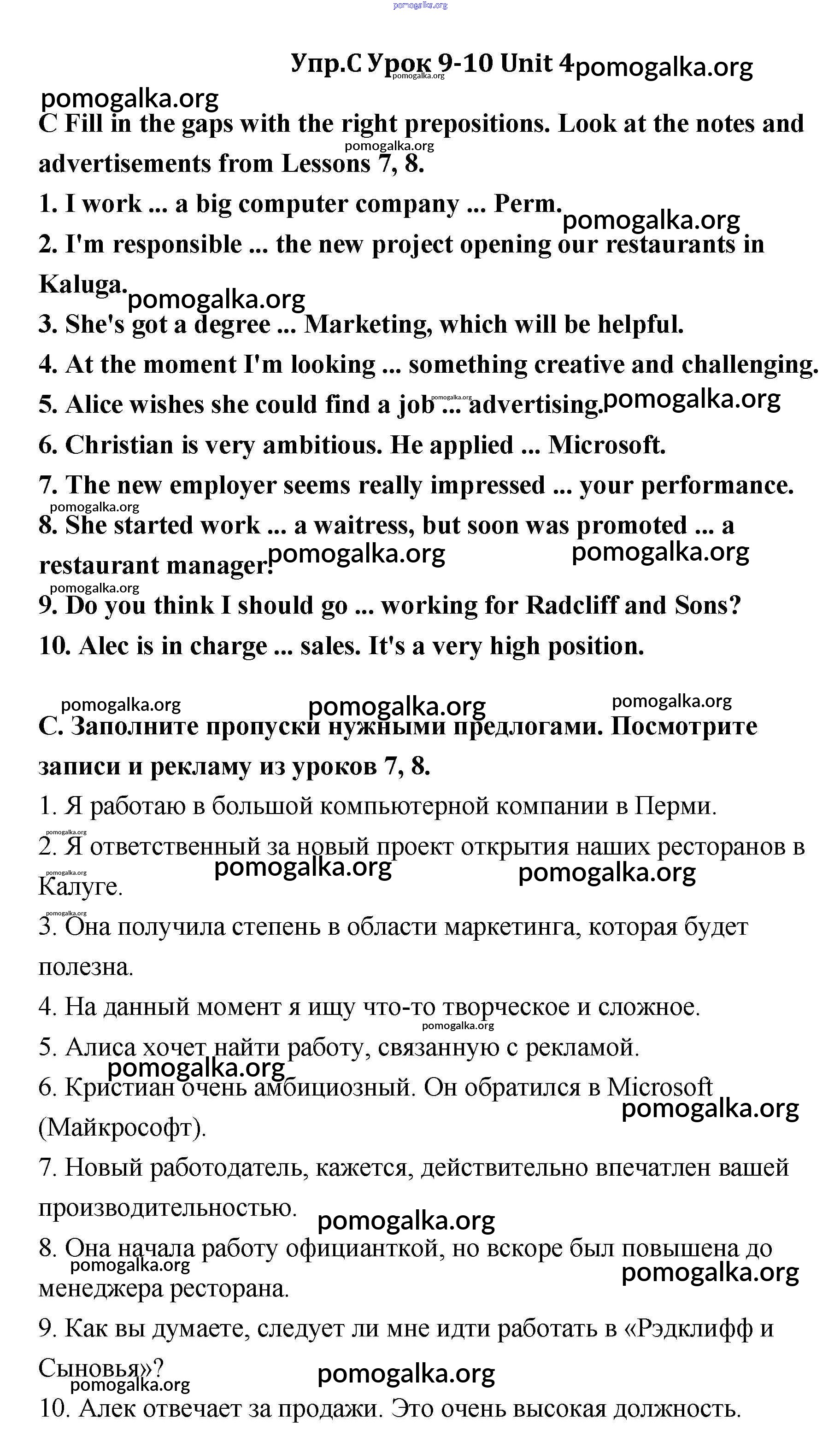 Готовые ответы - Английский язык 11 класс Кауфман - lesson 9-10 unit 4 C