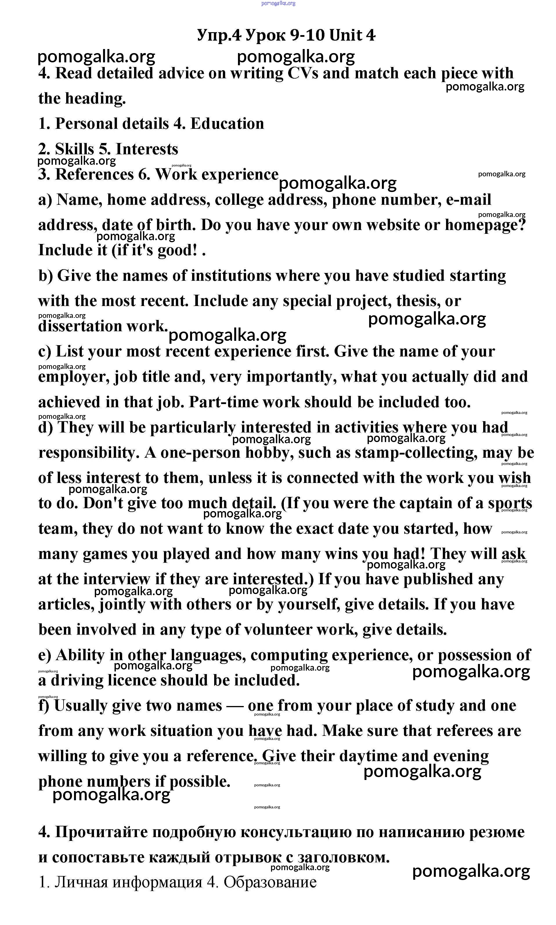 Готовые ответы - Английский язык 11 класс Кауфман - lesson 9-10 unit 4 4