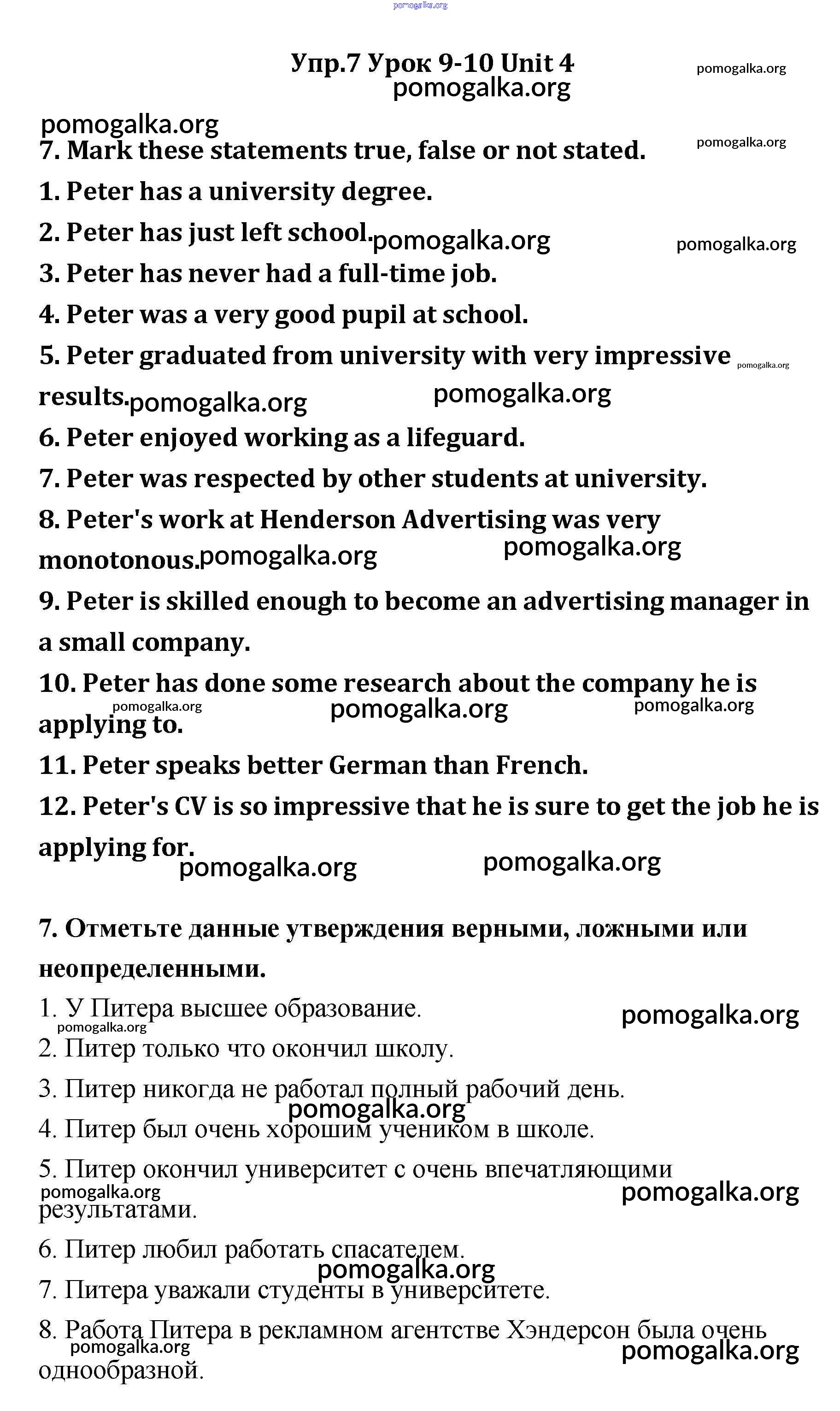 Готовые ответы - Английский язык 11 класс Кауфман - lesson 9-10 unit 4 7