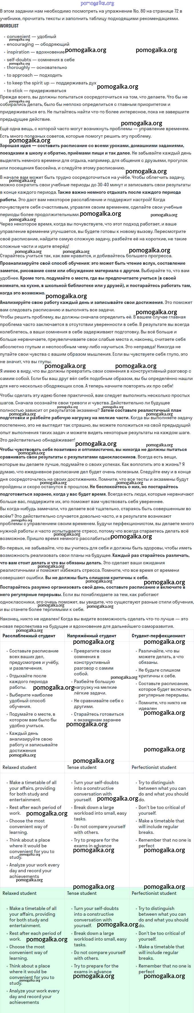 Структурированное пособие на каждый урок