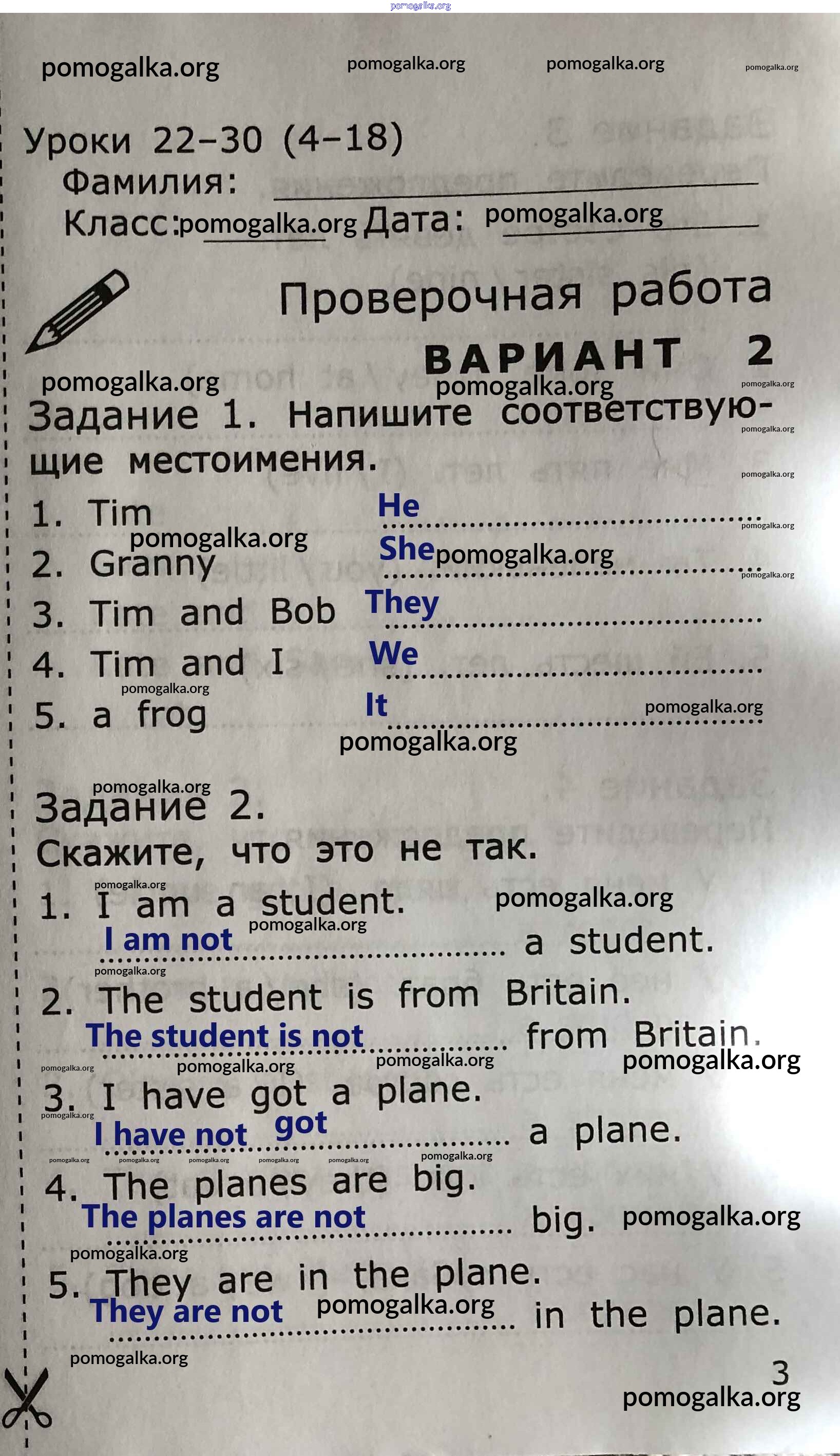 Готовые ответы - Английский язык. Грамматика английского языка 2 класс проверочные работы Барашкова Е.А. (к уч. Верещагиной) - страница 3
