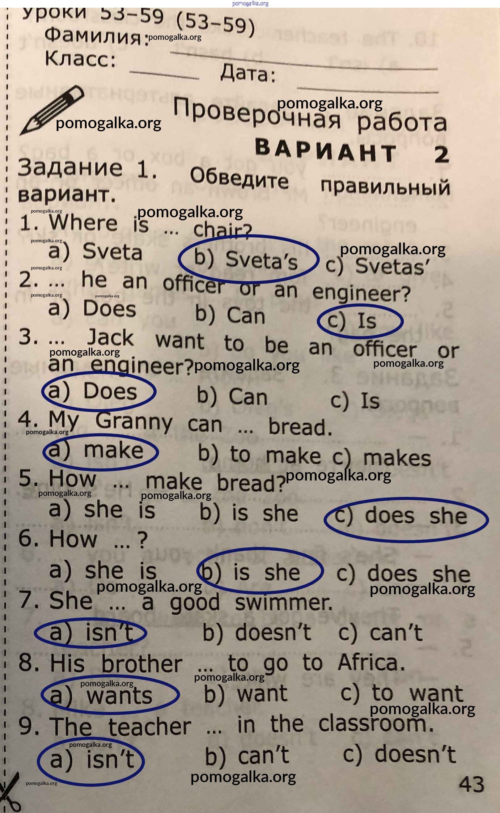 Готовые ответы - Английский язык. Грамматика английского языка 2 класс проверочные работы Барашкова Е.А. (к уч. Верещагиной) - страница 43