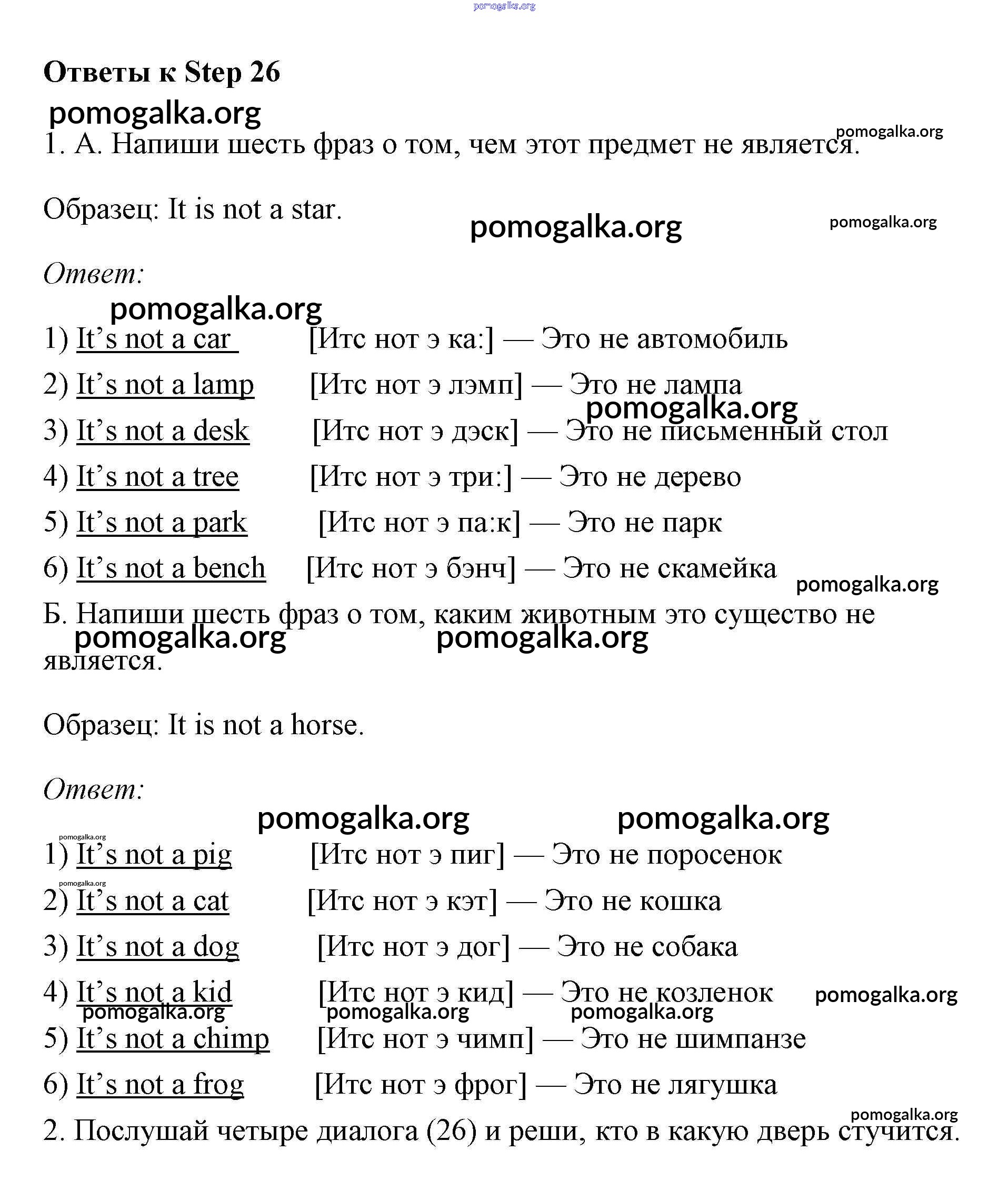 Готовые ответы - Английский язык 2 класс рабочая тетрадь Афанасьева Михеева Rainbow - step 26