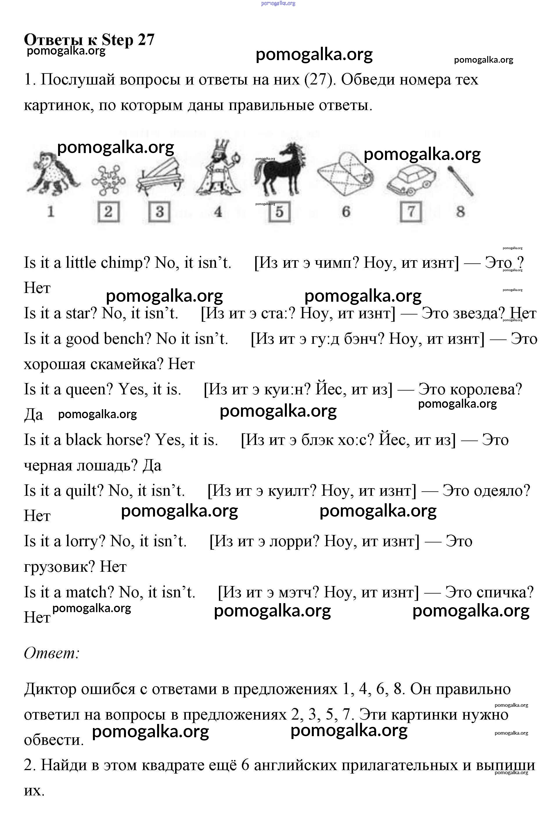 Готовые ответы - Английский язык 2 класс рабочая тетрадь Афанасьева Михеева Rainbow - step 27