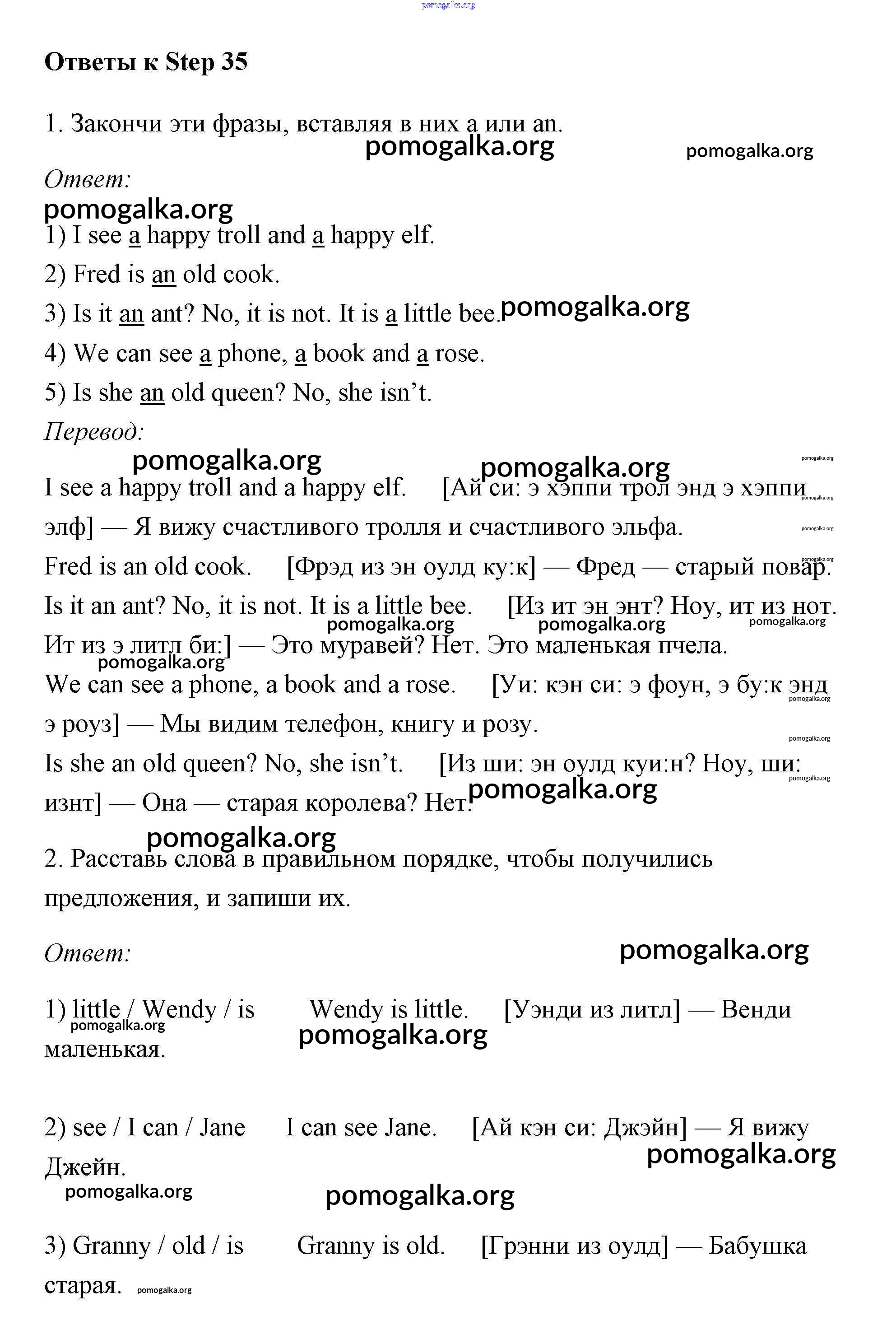 Готовые ответы - Английский язык 2 класс рабочая тетрадь Афанасьева Михеева Rainbow - step 35