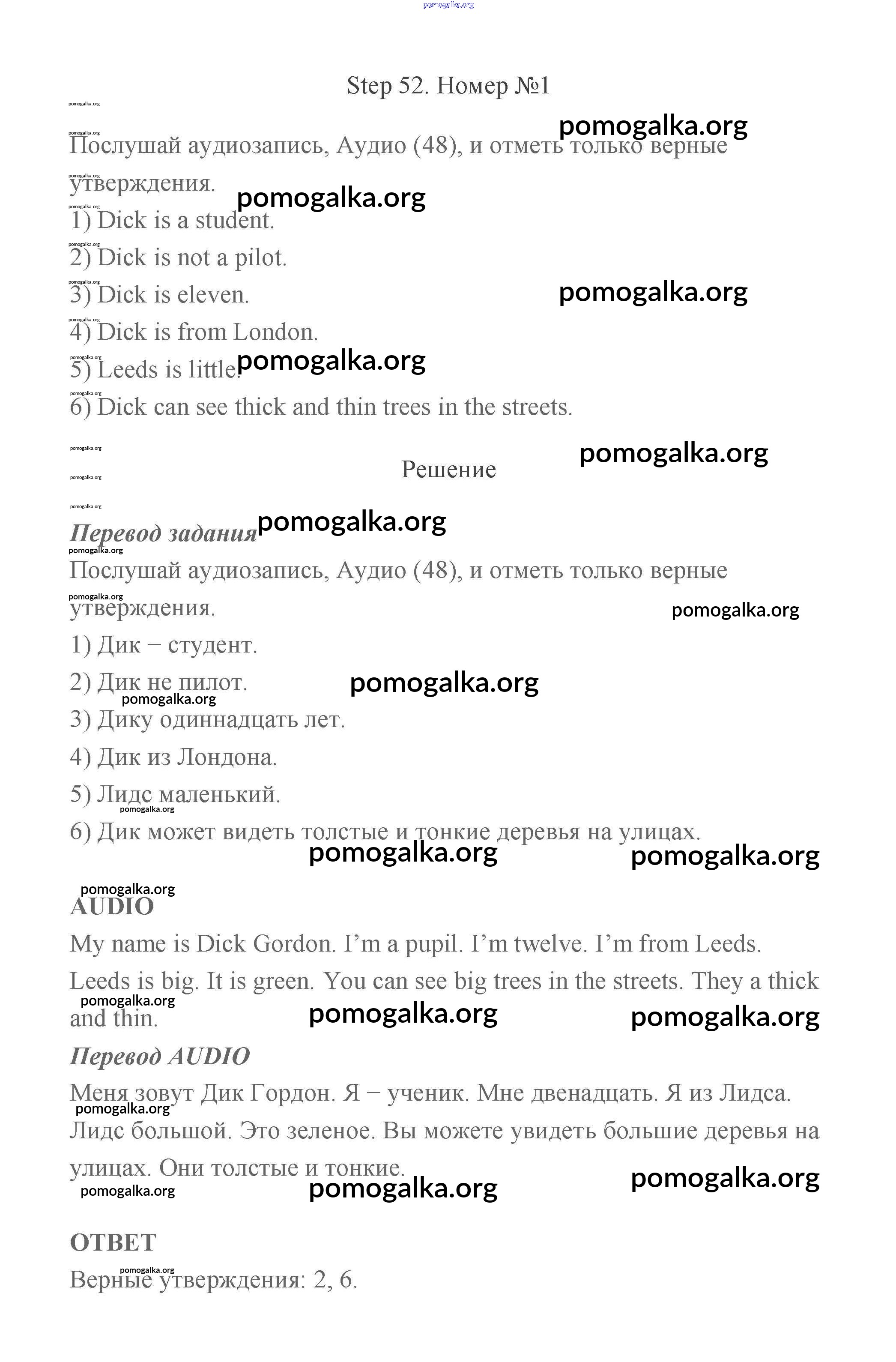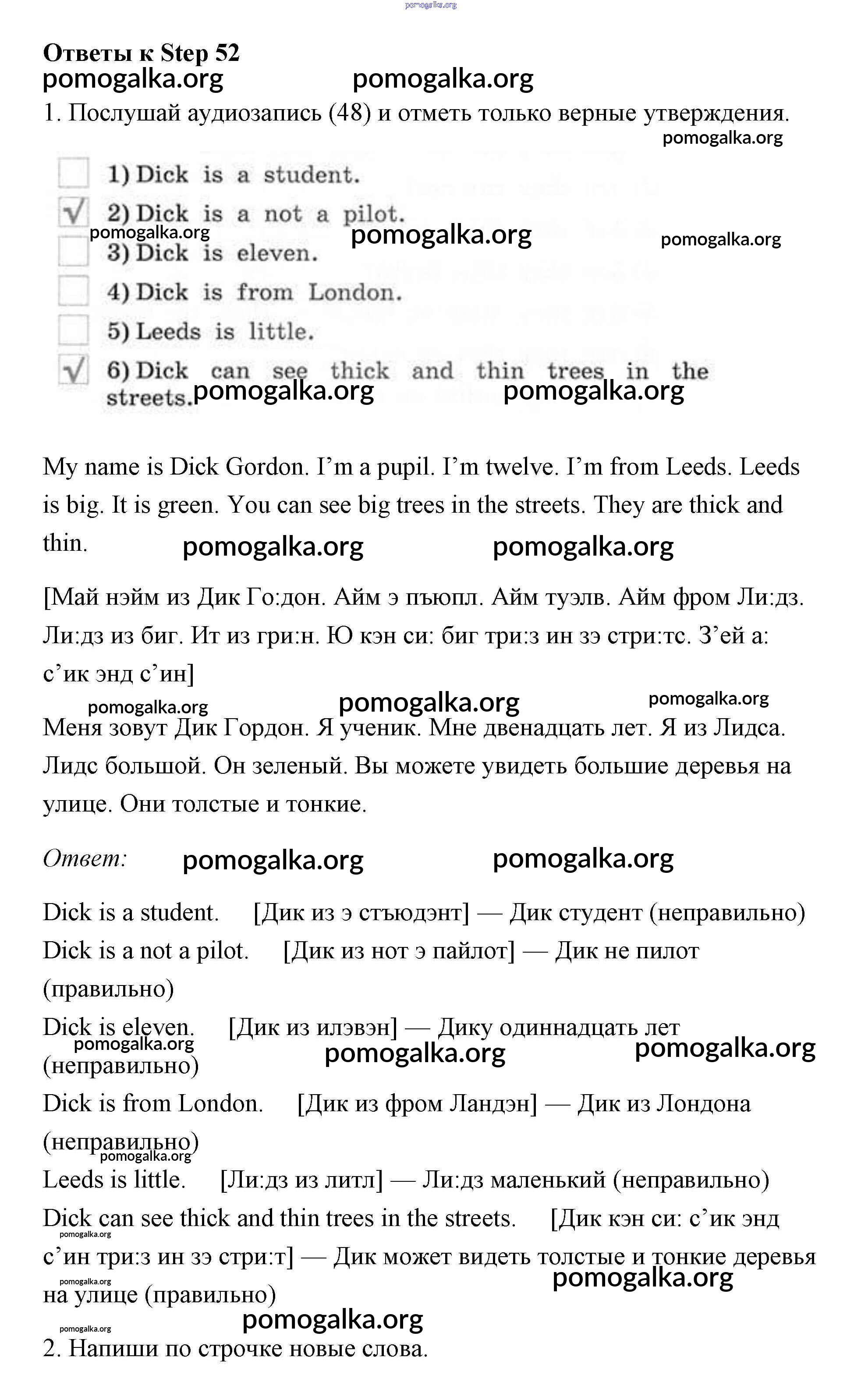 Готовые ответы - Английский язык 2 класс рабочая тетрадь Афанасьева Михеева Rainbow - step 52
