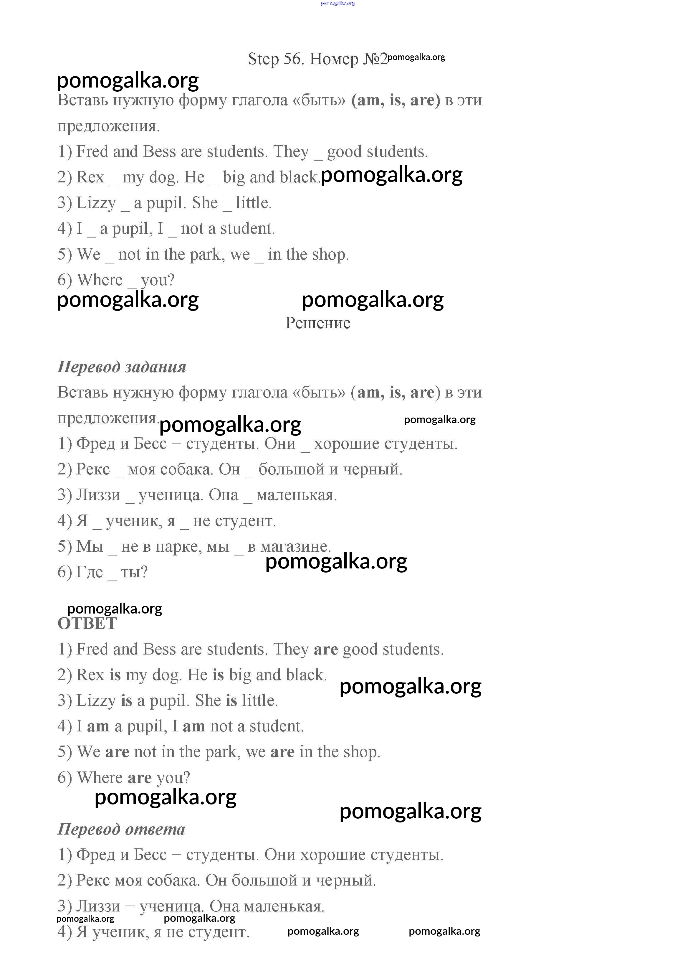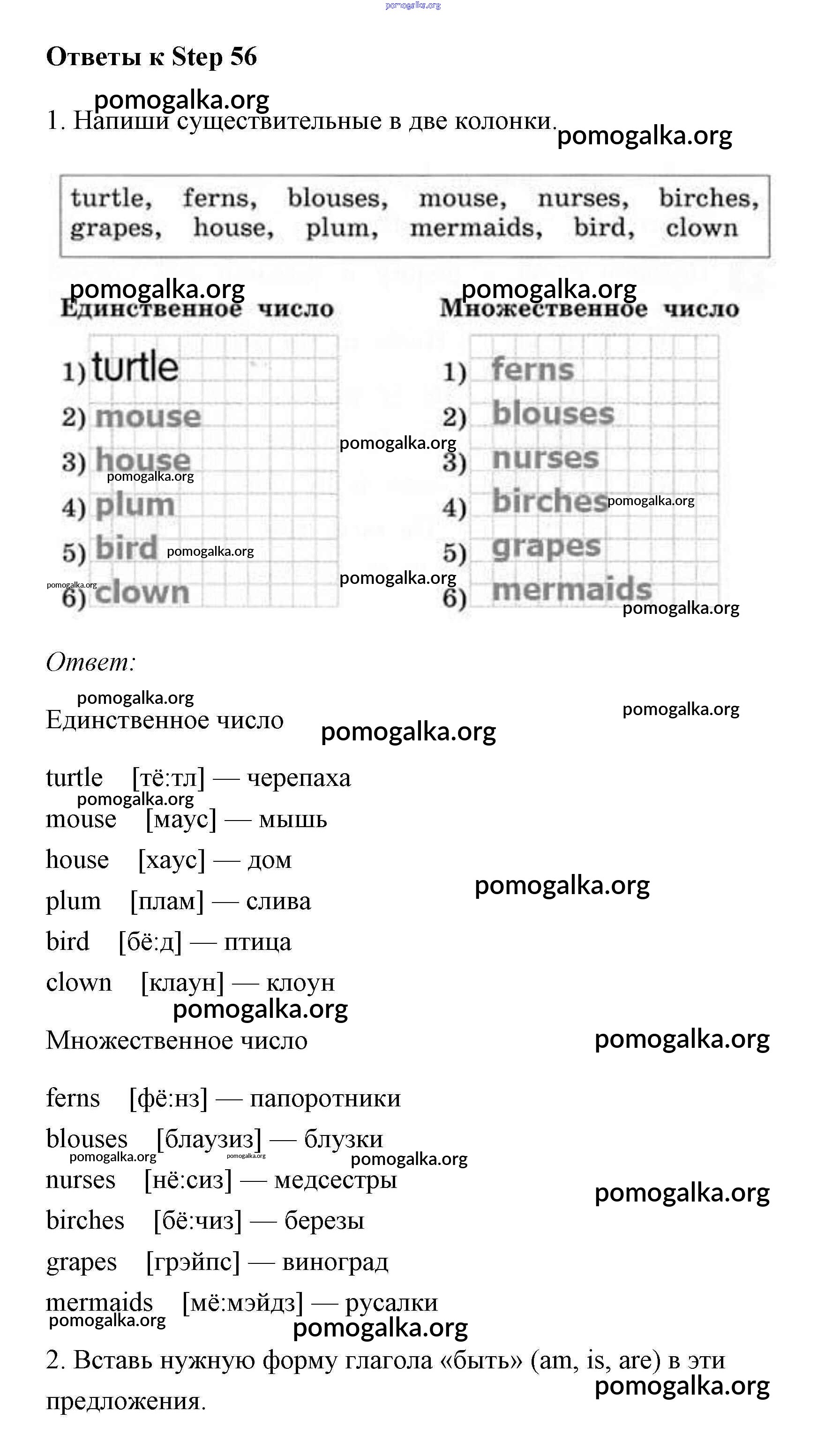 Готовые ответы - Английский язык 2 класс рабочая тетрадь Афанасьева Михеева Rainbow - step 56