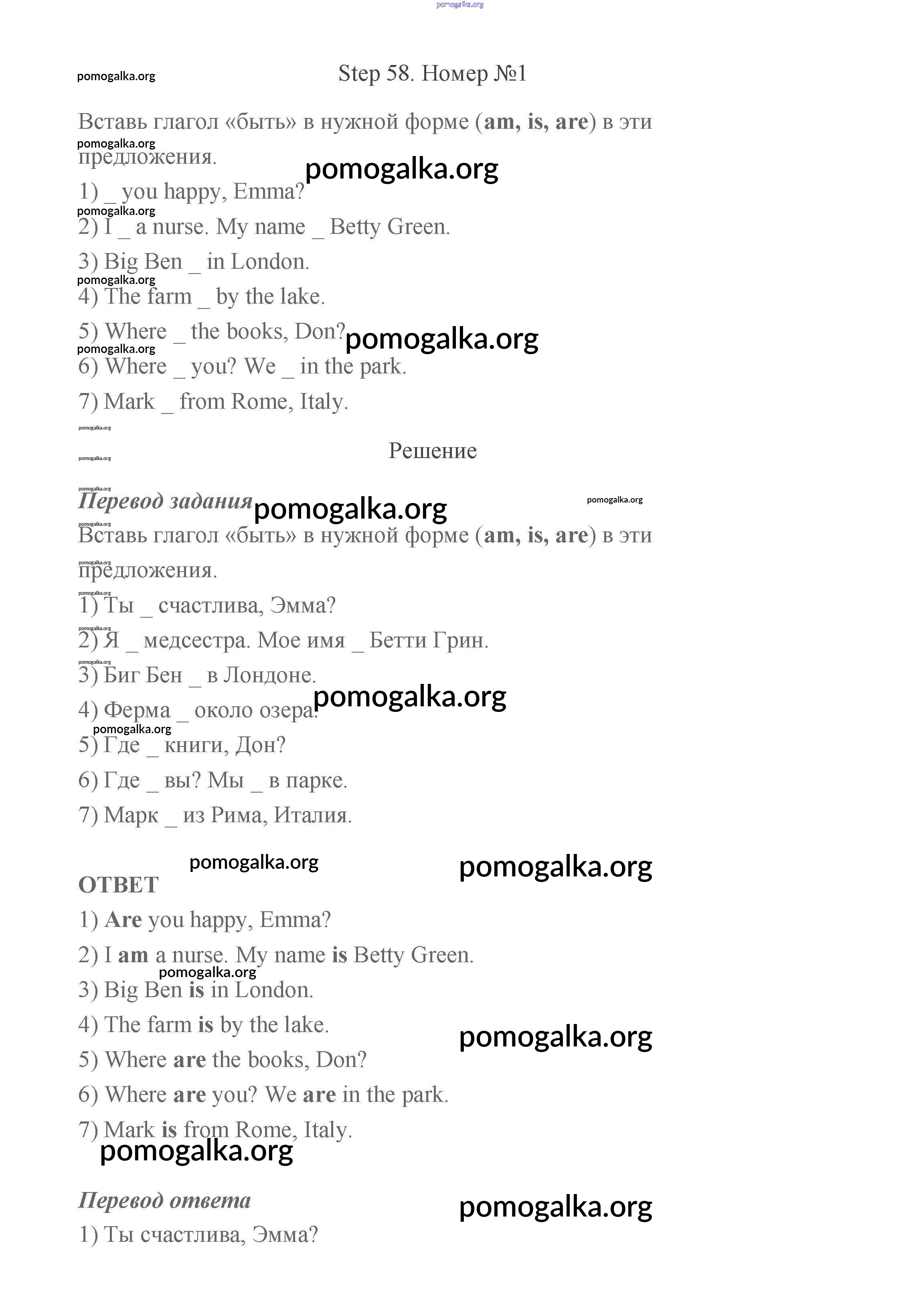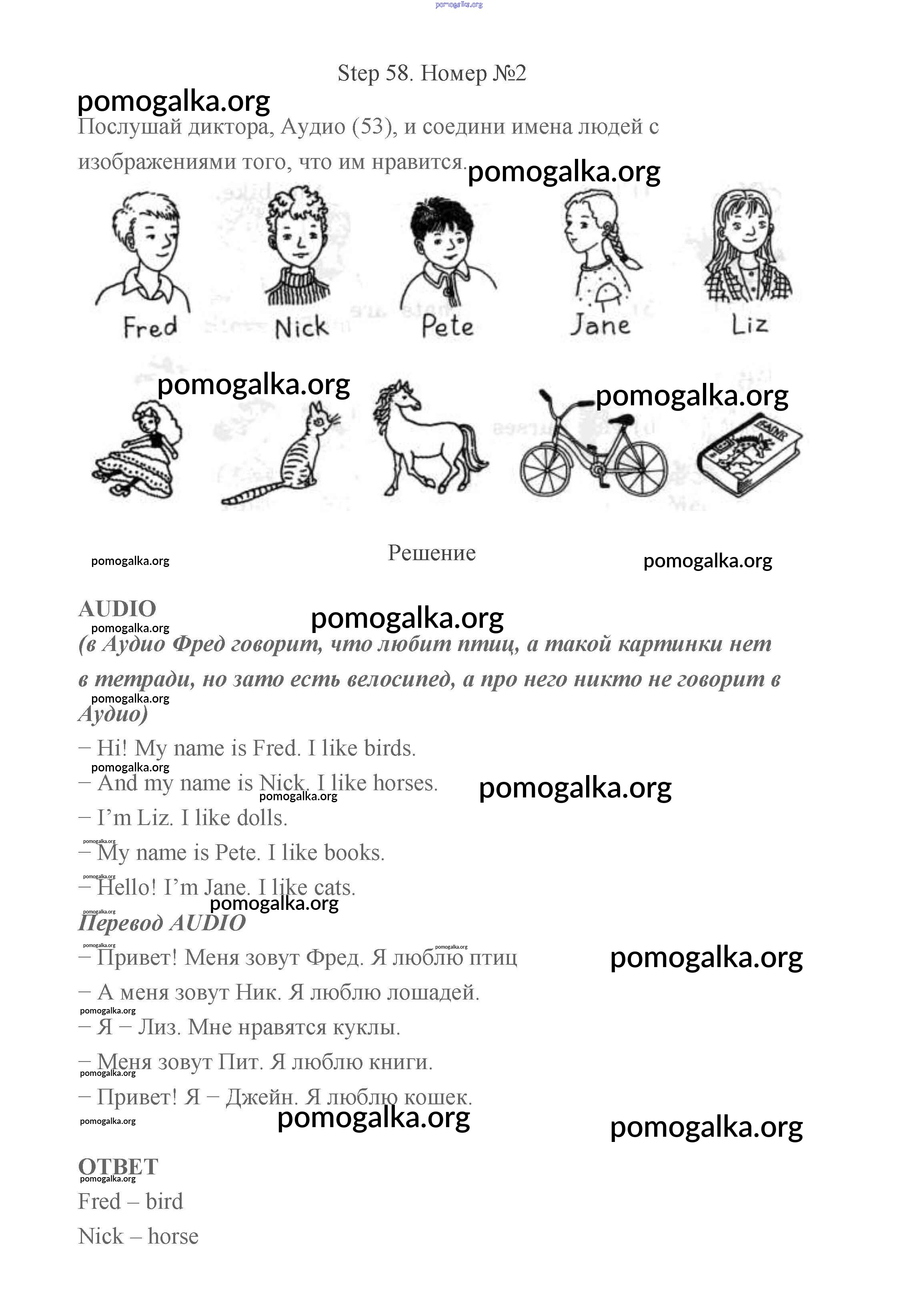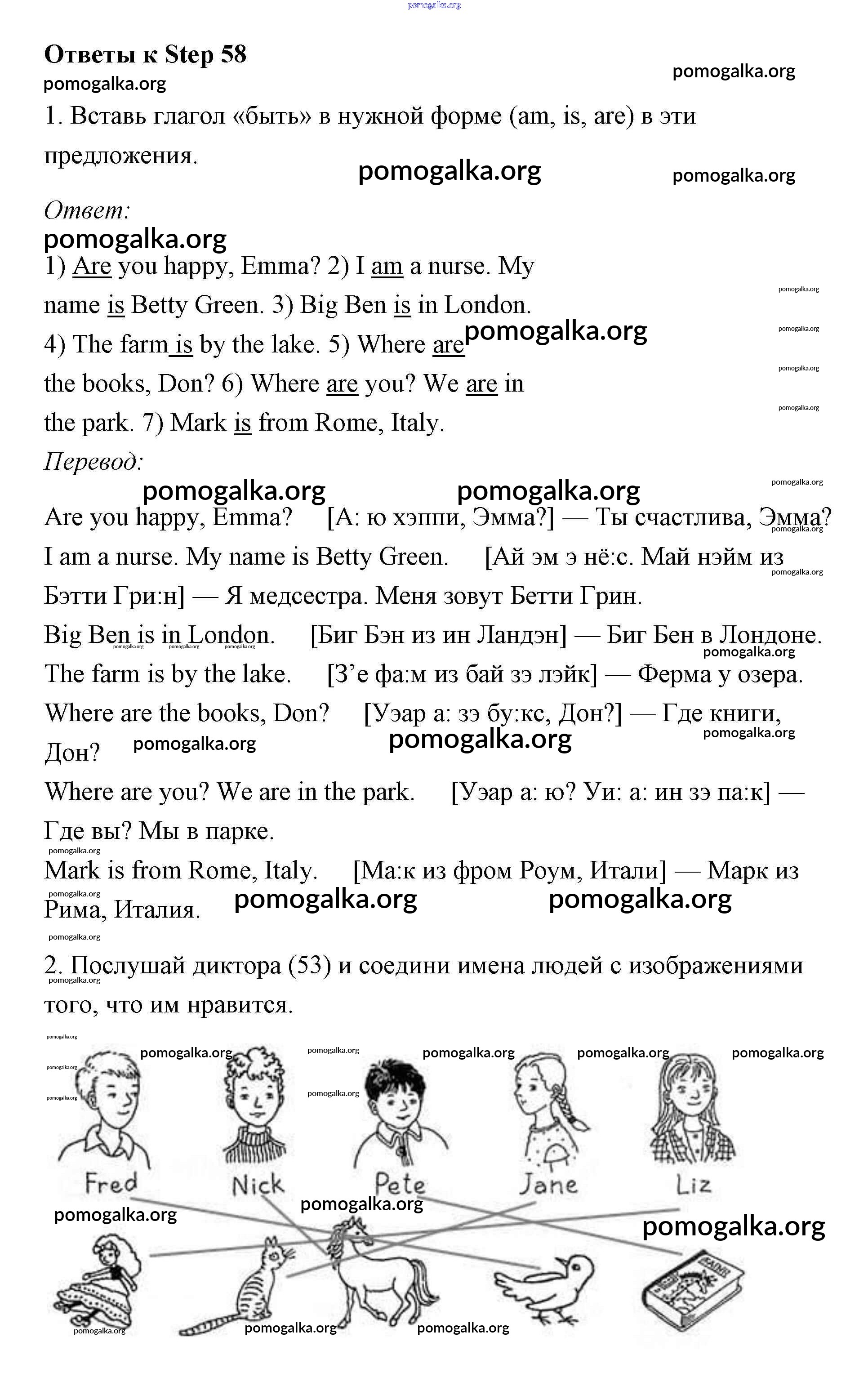 Готовые ответы - Английский язык 2 класс рабочая тетрадь Афанасьева Михеева Rainbow - step 58