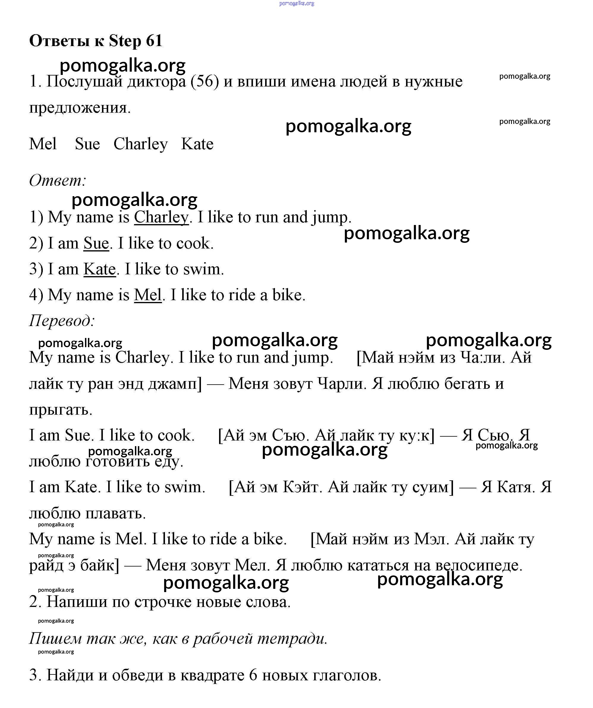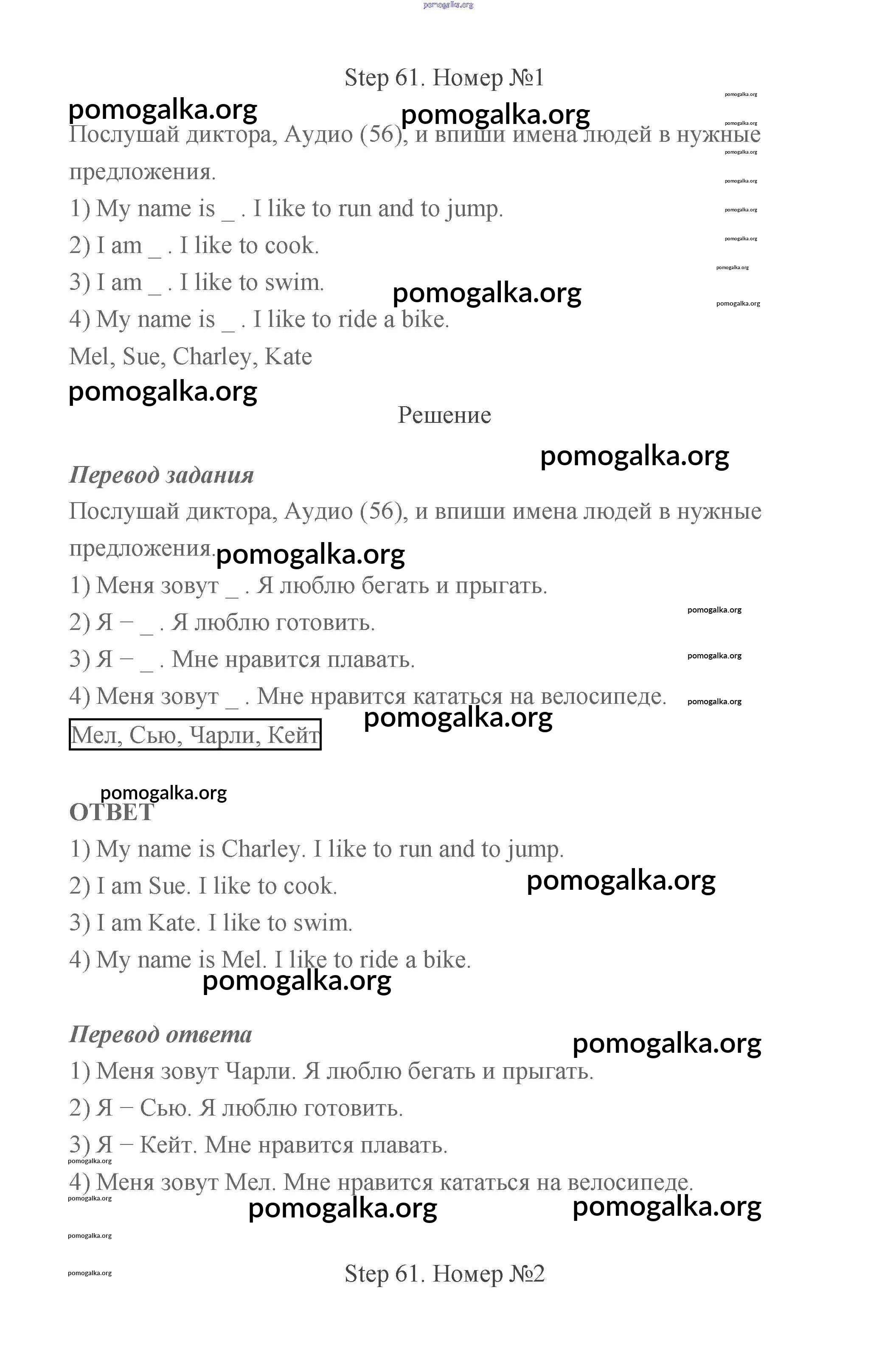 Готовые ответы - Английский язык 2 класс рабочая тетрадь Афанасьева Михеева Rainbow - step 61