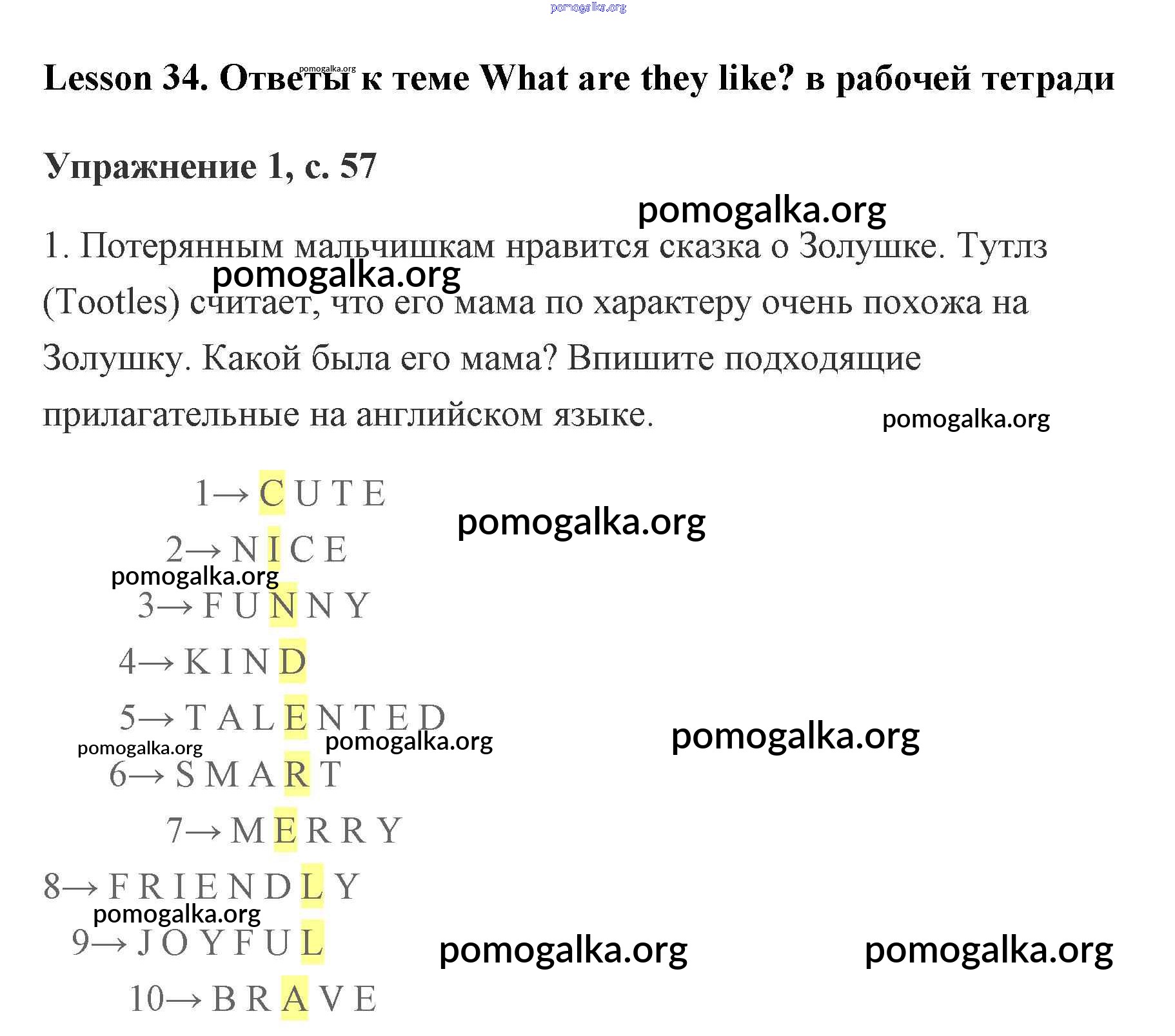 Готовые ответы - Английский язык рабочая тетрадь 2 класс Кузовлёв - lesson 34. What are they like 57