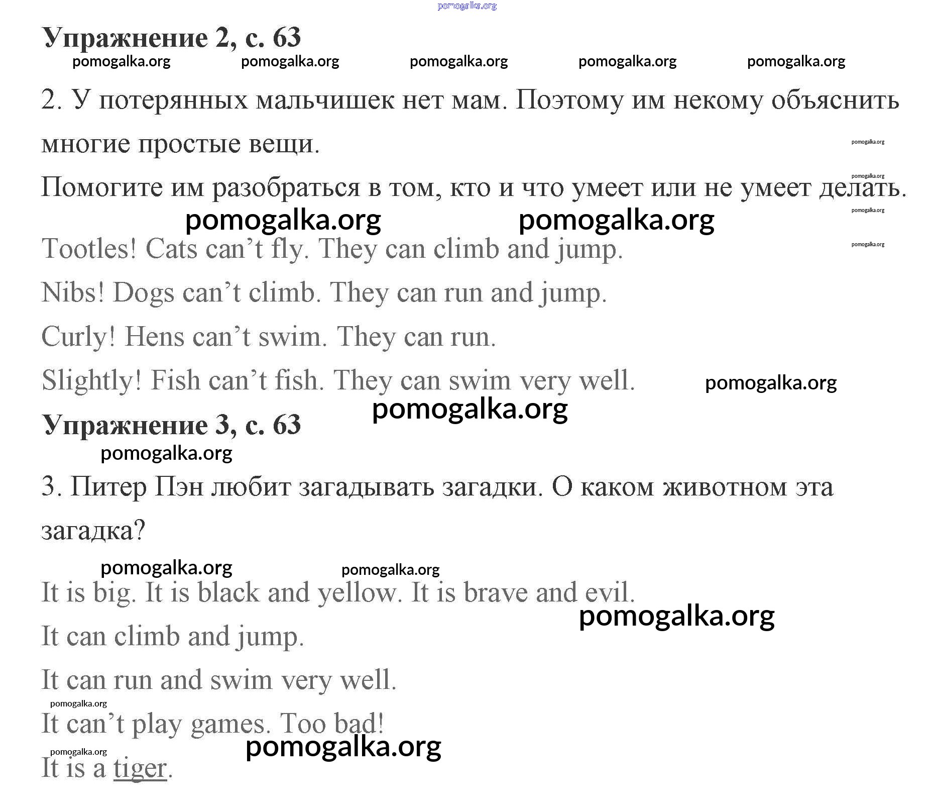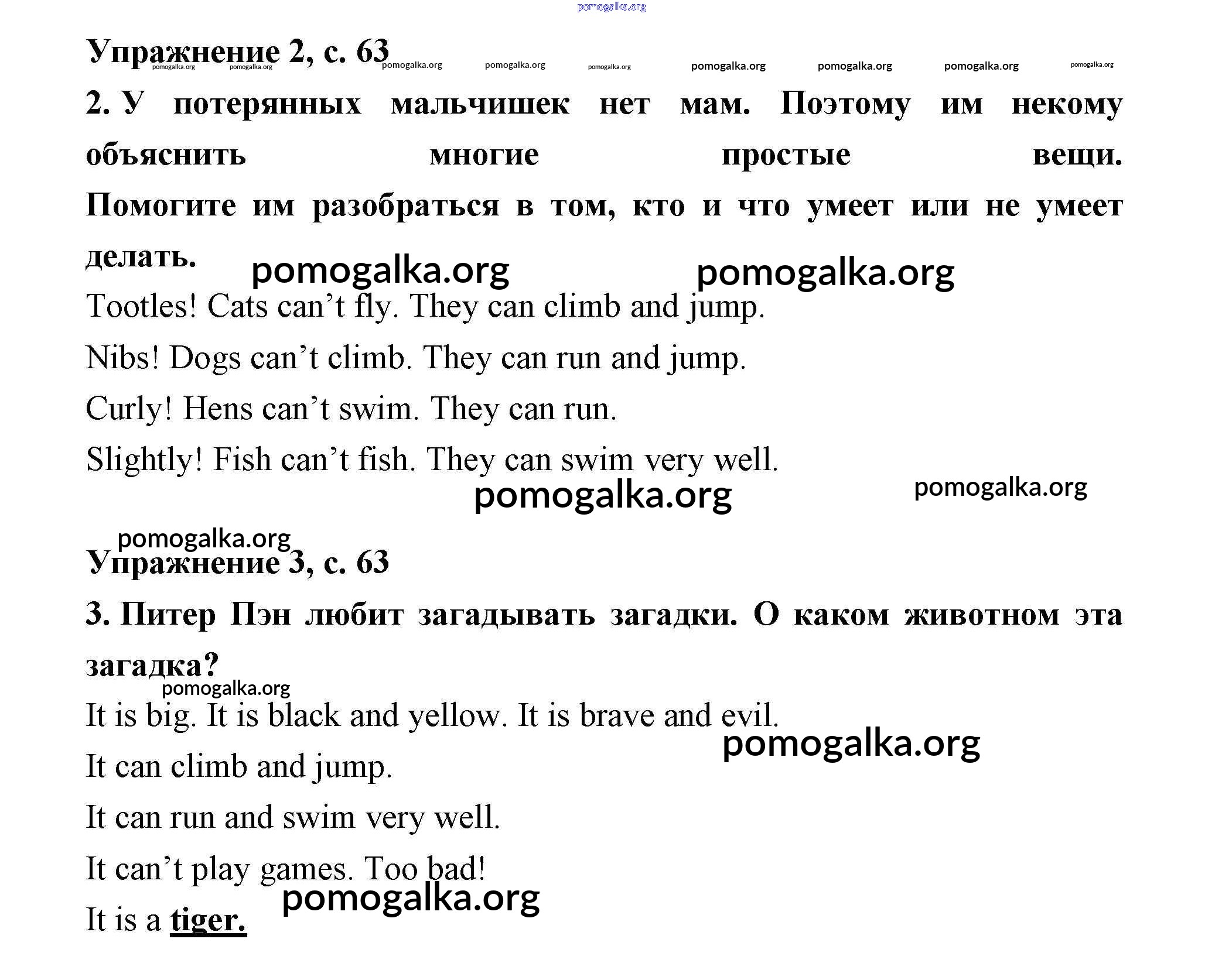 Готовые ответы - Английский язык рабочая тетрадь 2 класс Кузовлёв - lesson 37. I can fly! 63