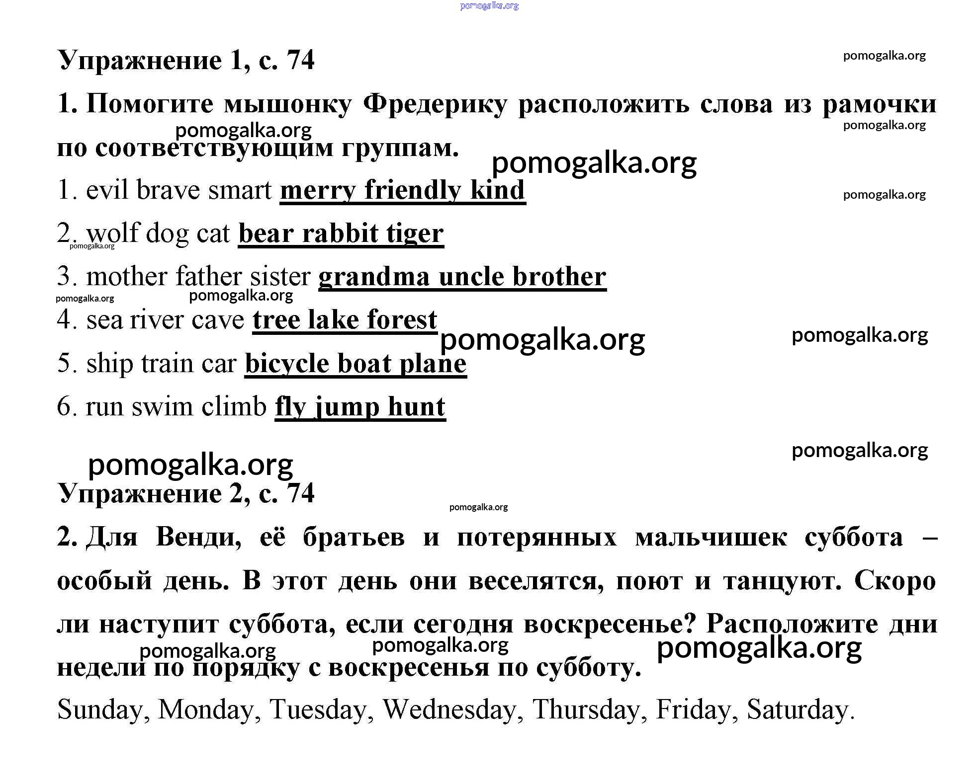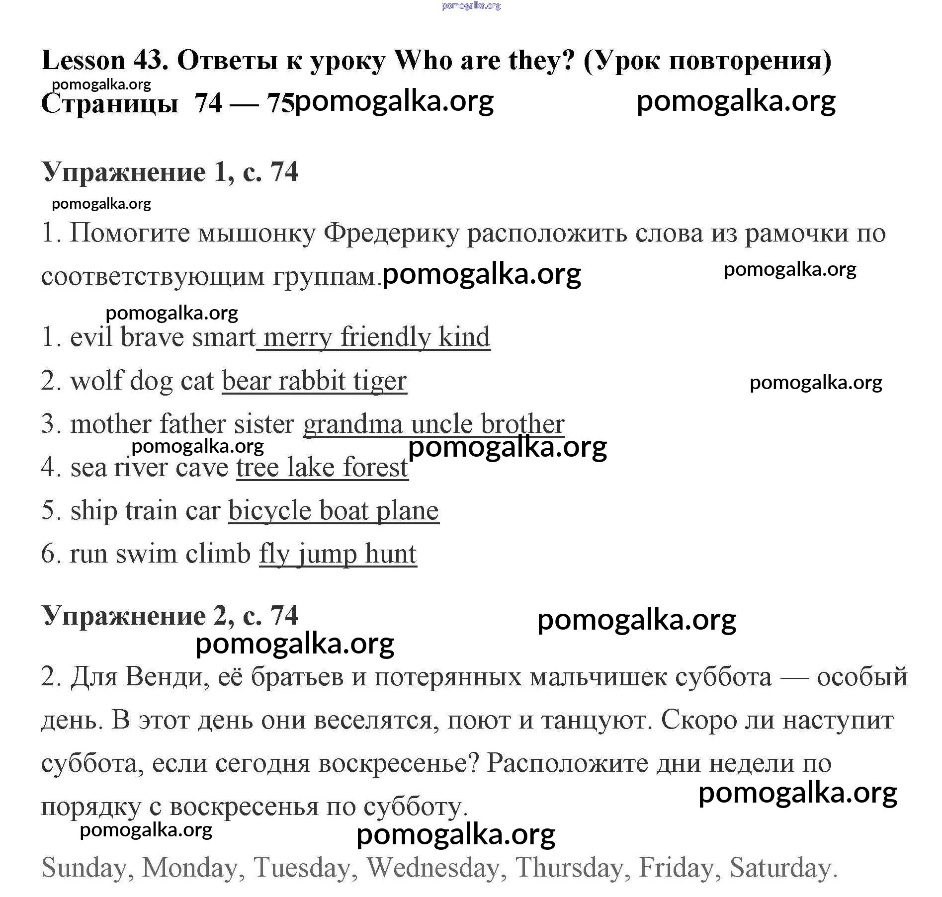 Готовые ответы - Английский язык рабочая тетрадь 2 класс Кузовлёв - lesson 43. Who are they (Урок повторения) 74