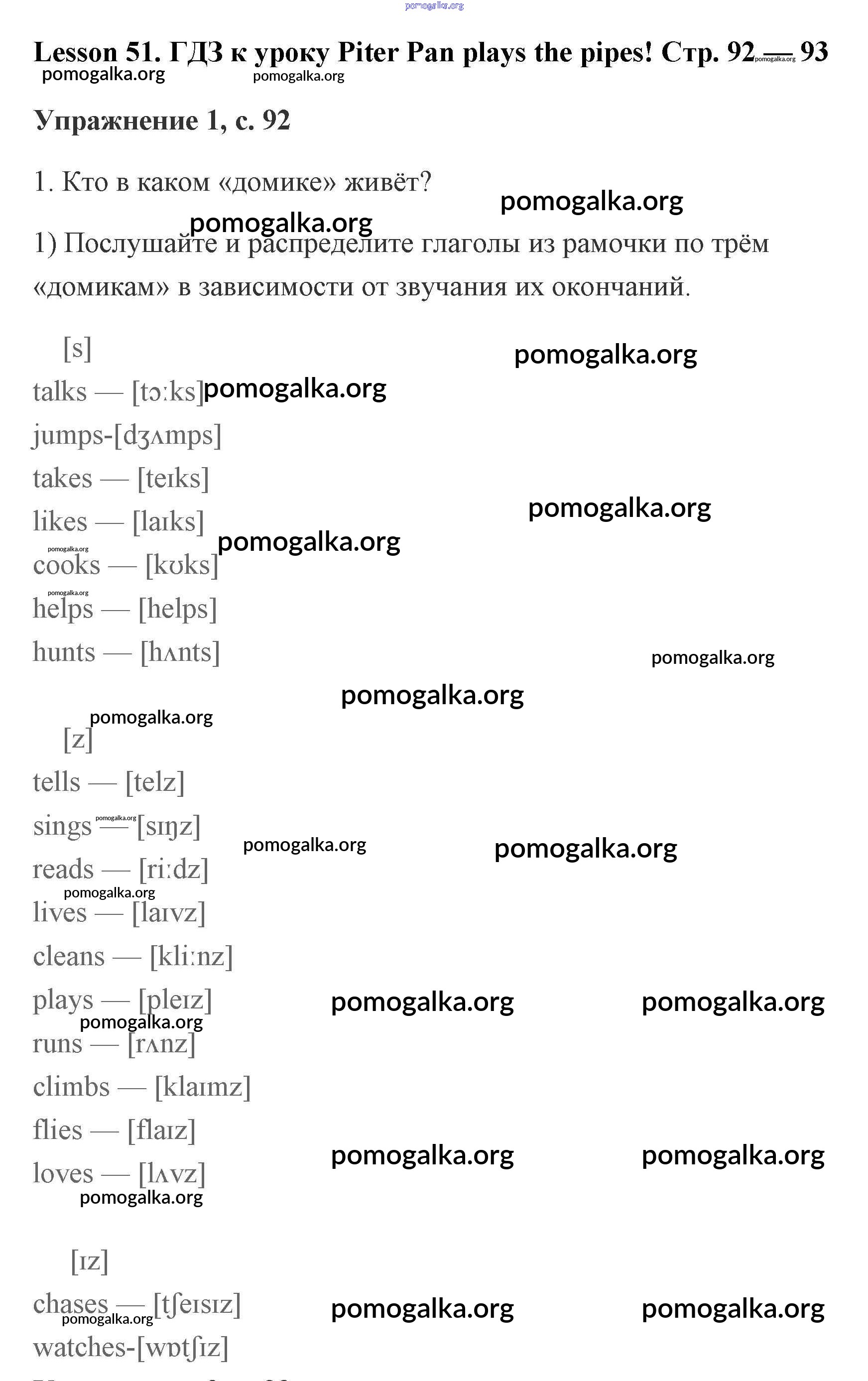 Готовые ответы - Английский язык рабочая тетрадь 2 класс Кузовлёв - lesson 51. Piter Pan plays the pipes! 92