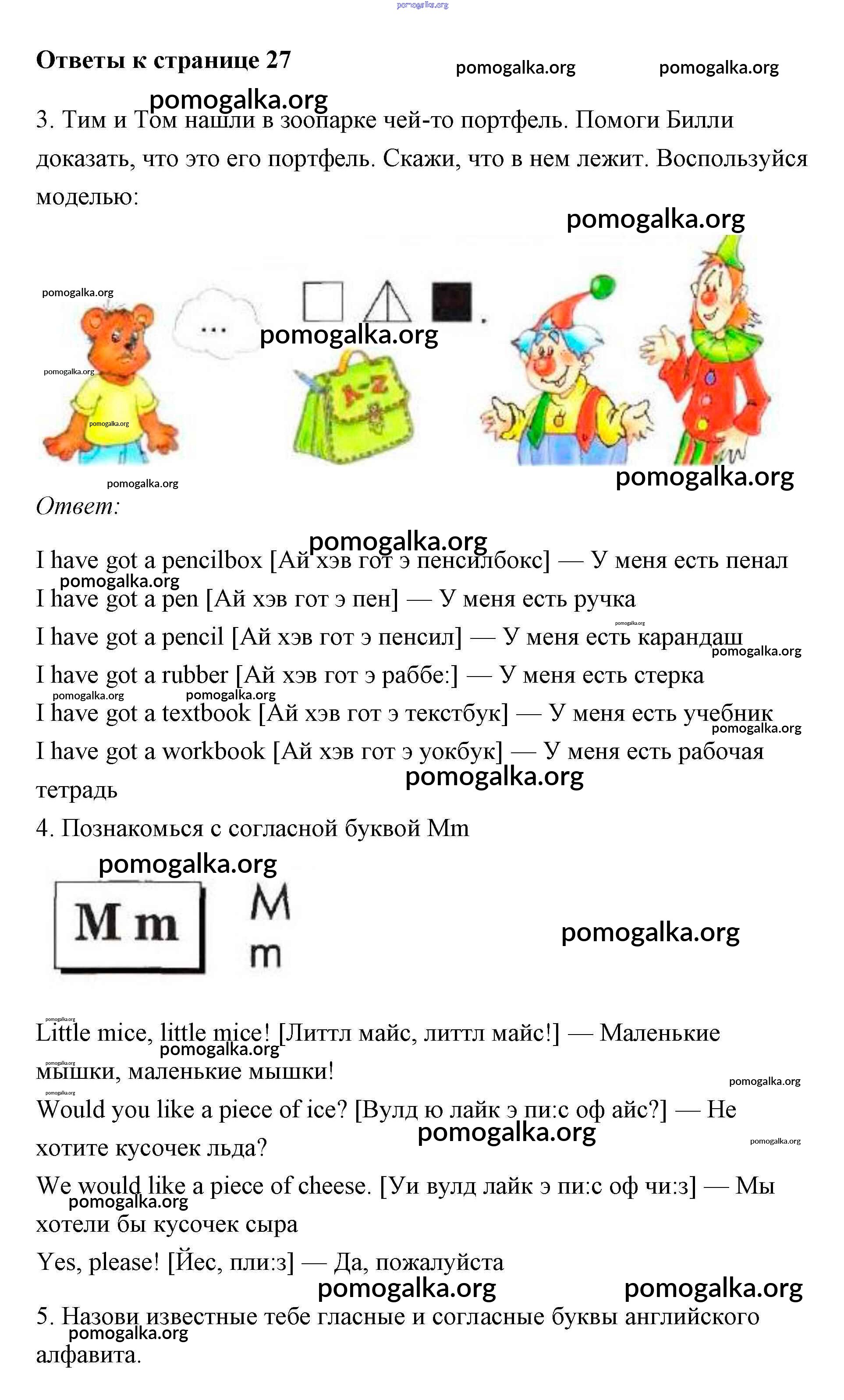 Готовые ответы - Английский язык 2 класс Биболетова Enjoy English - страница 27
