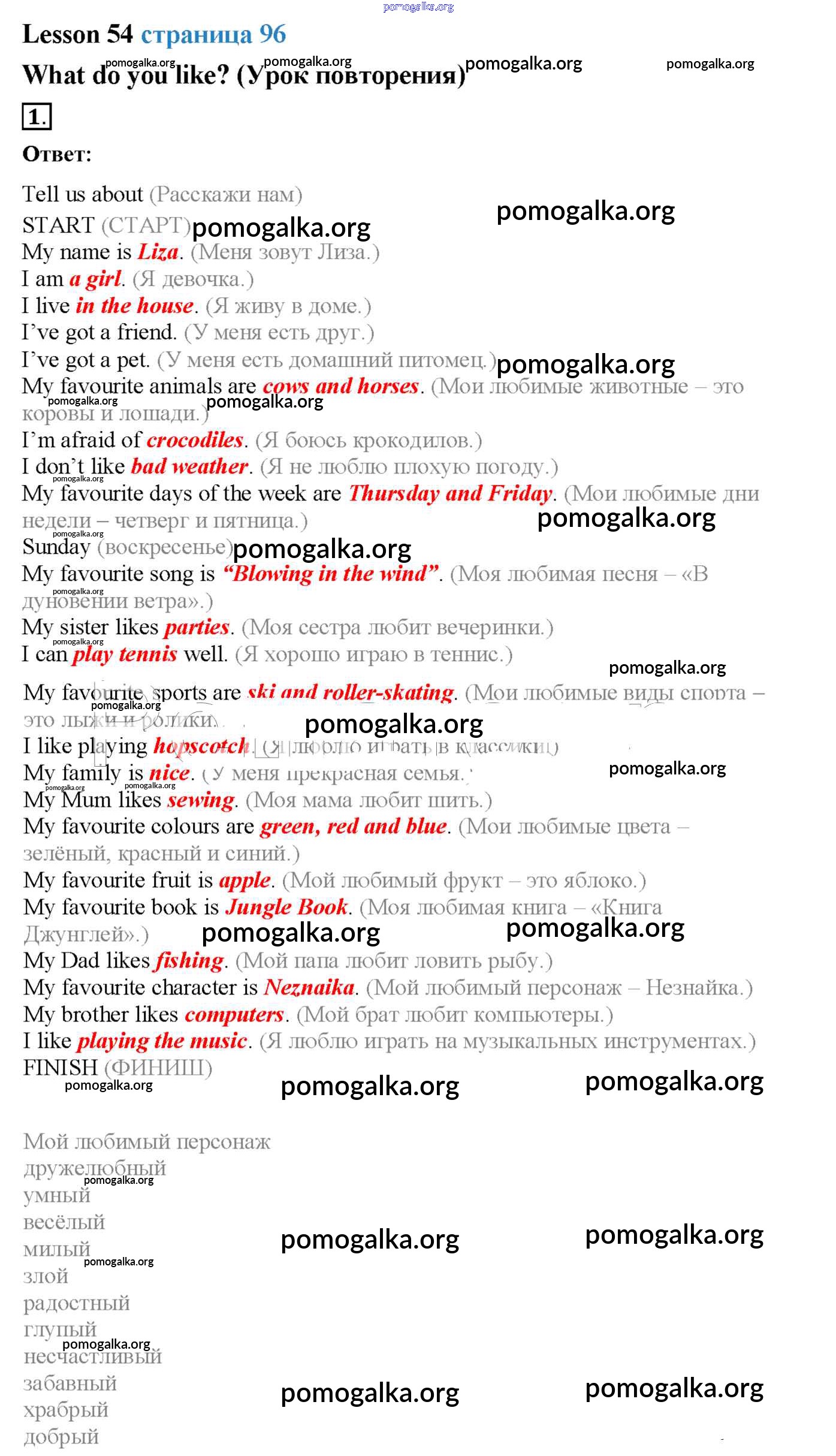 Готовые ответы - Английский язык 2 класс Кузовлёв - lesson 29-55 54