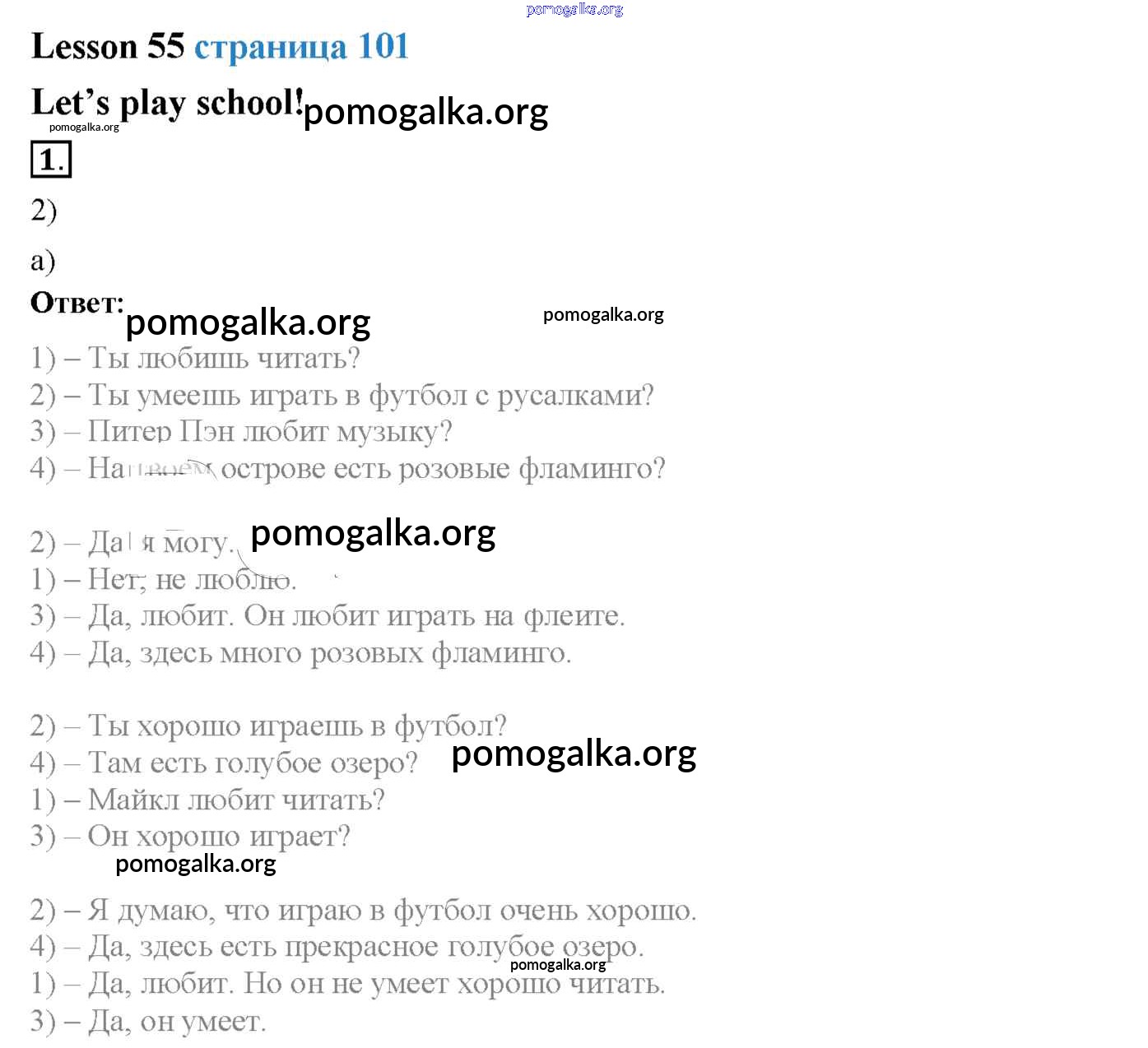 Готовые ответы - Английский язык 2 класс Кузовлёв - lesson 29-55 55