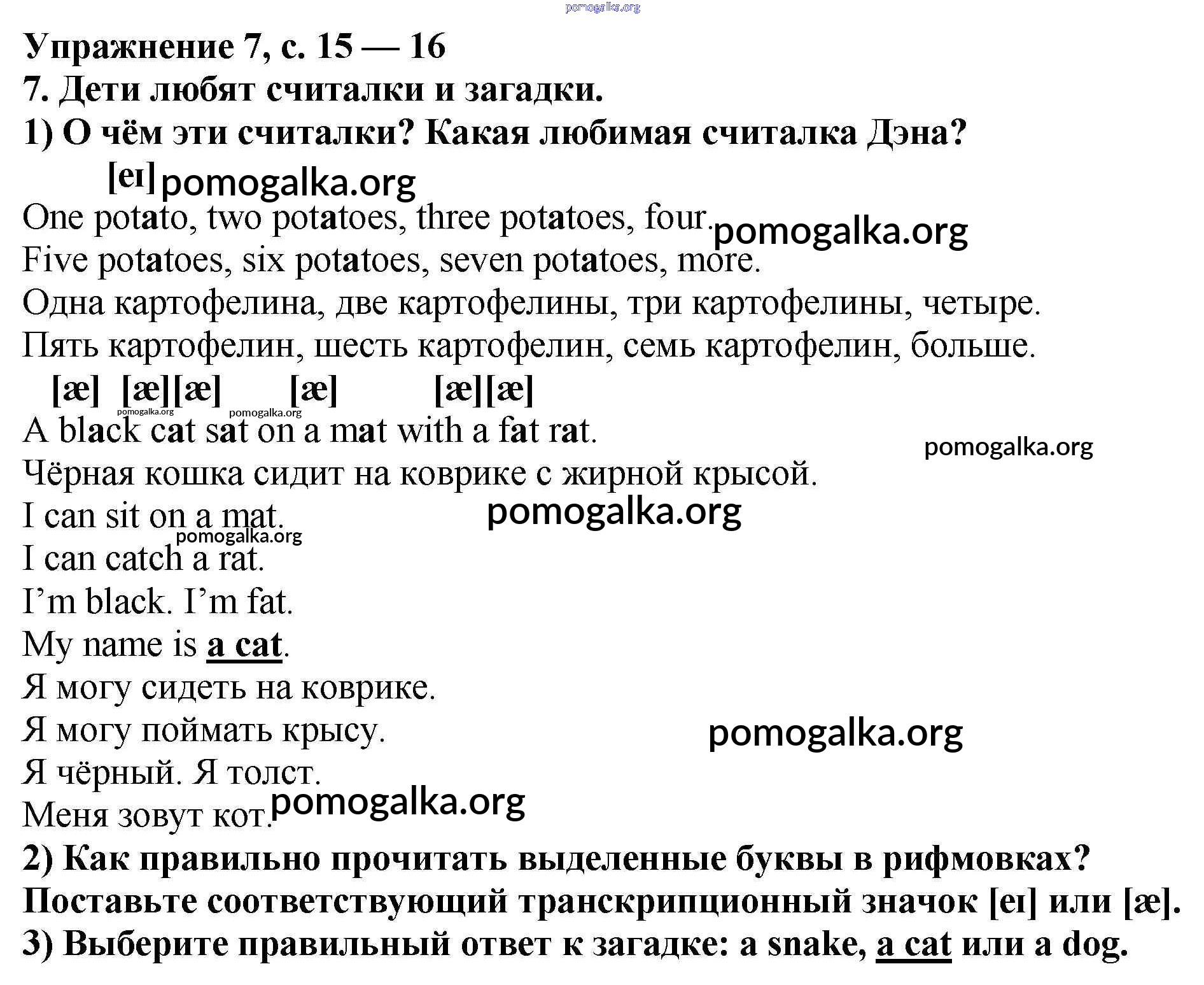 Готовые ответы - Английский 3 класс книга для чтения Кузовлев - unit 1 7