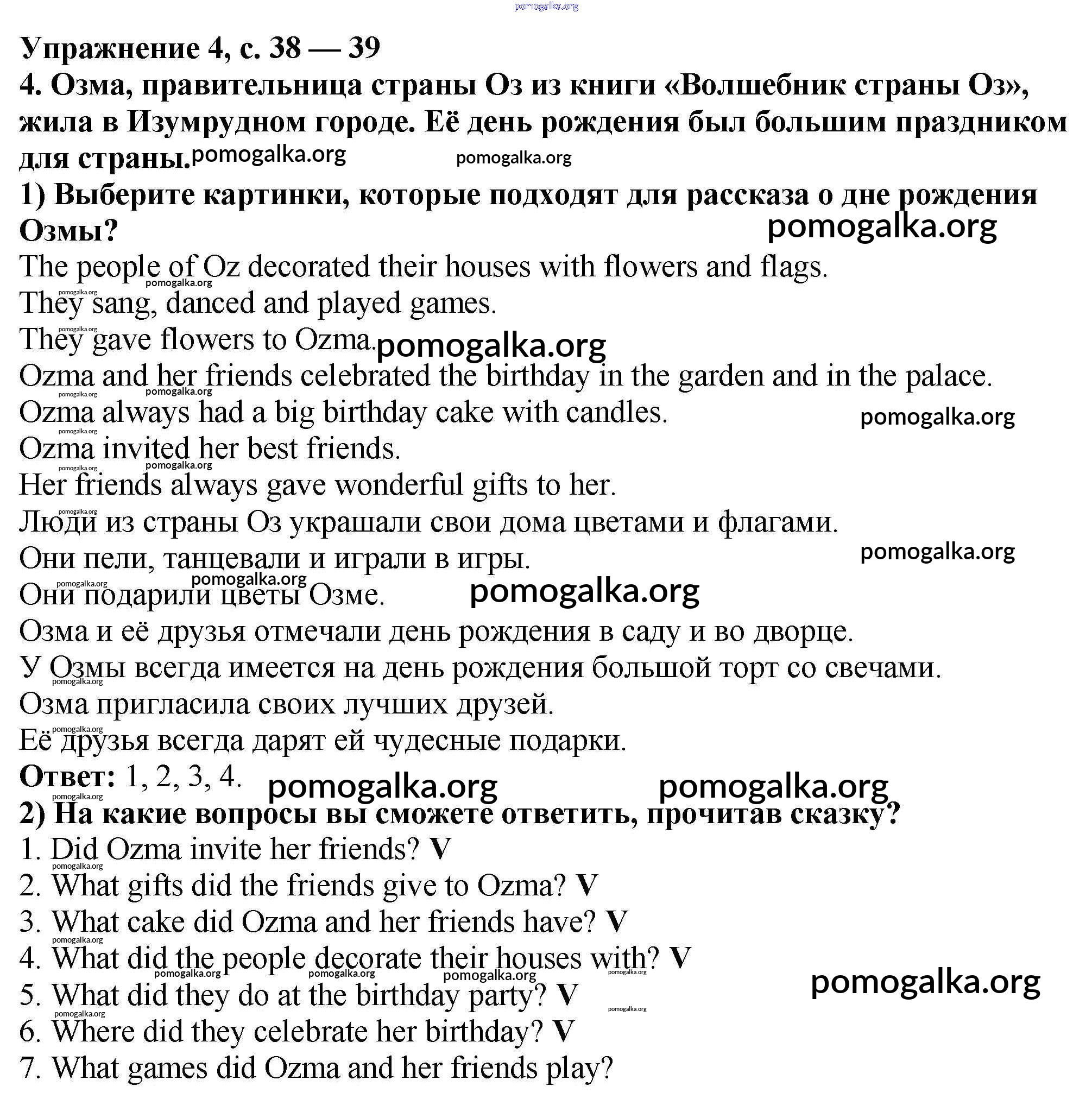 Готовые ответы - Английский 3 класс книга для чтения Кузовлев - unit 4 4
