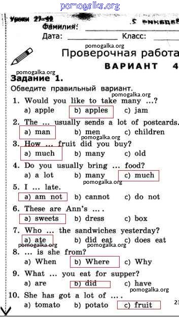 Готовые ответы - Английский язык. Грамматика английского языка 3 класс проверочные работы Барашкова Е.А. (к уч. Верещагиной) - страница 23