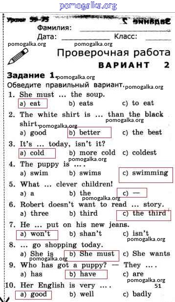 Готовые ответы - Английский язык. Грамматика английского языка 3 класс проверочные работы Барашкова Е.А. (к уч. Верещагиной) - страница 51