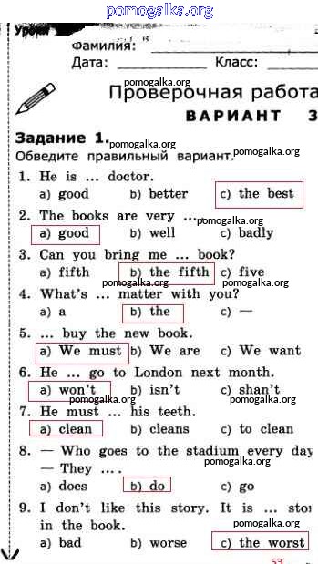 Готовые ответы - Английский язык. Грамматика английского языка 3 класс проверочные работы Барашкова Е.А. (к уч. Верещагиной) - страница 53