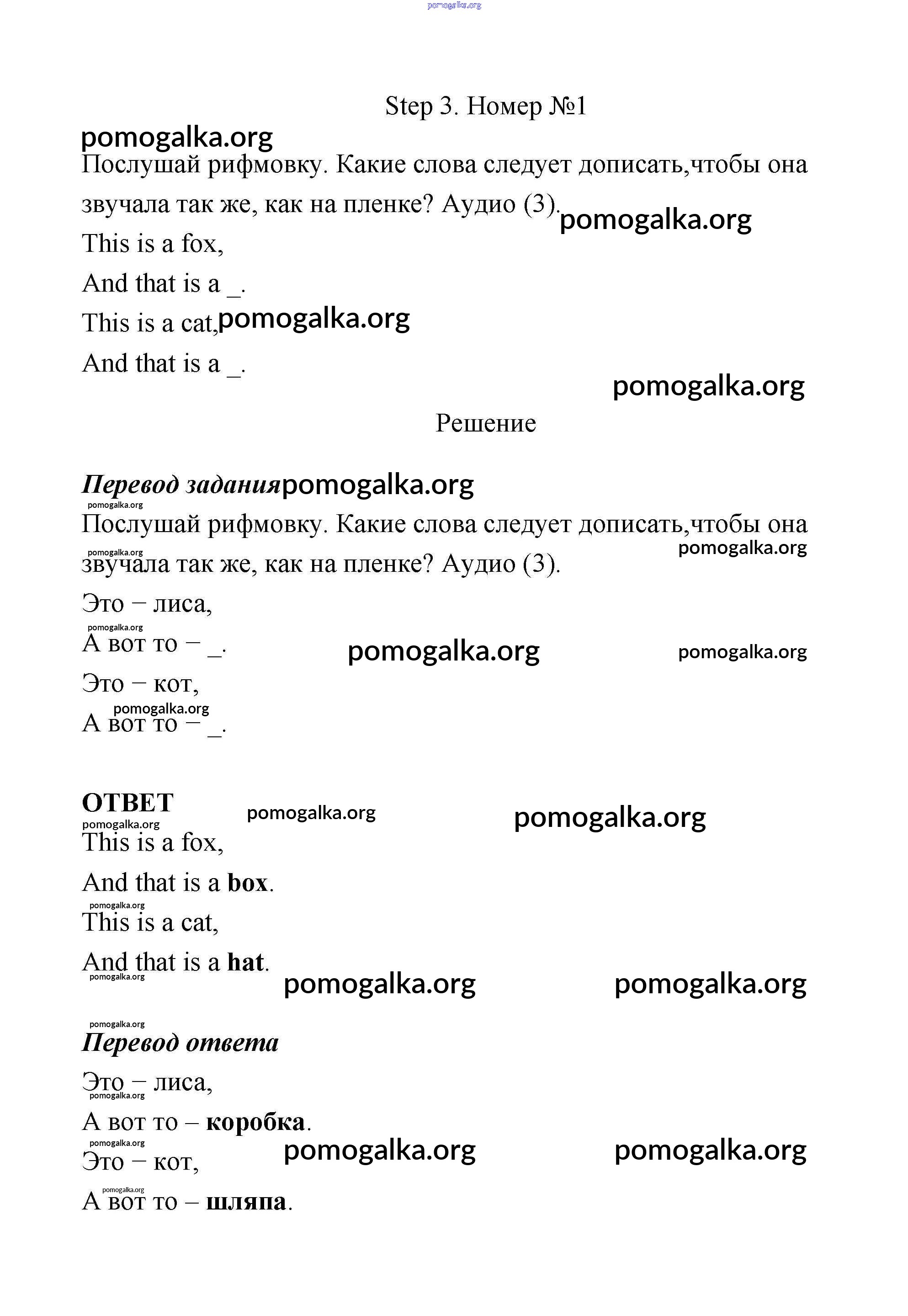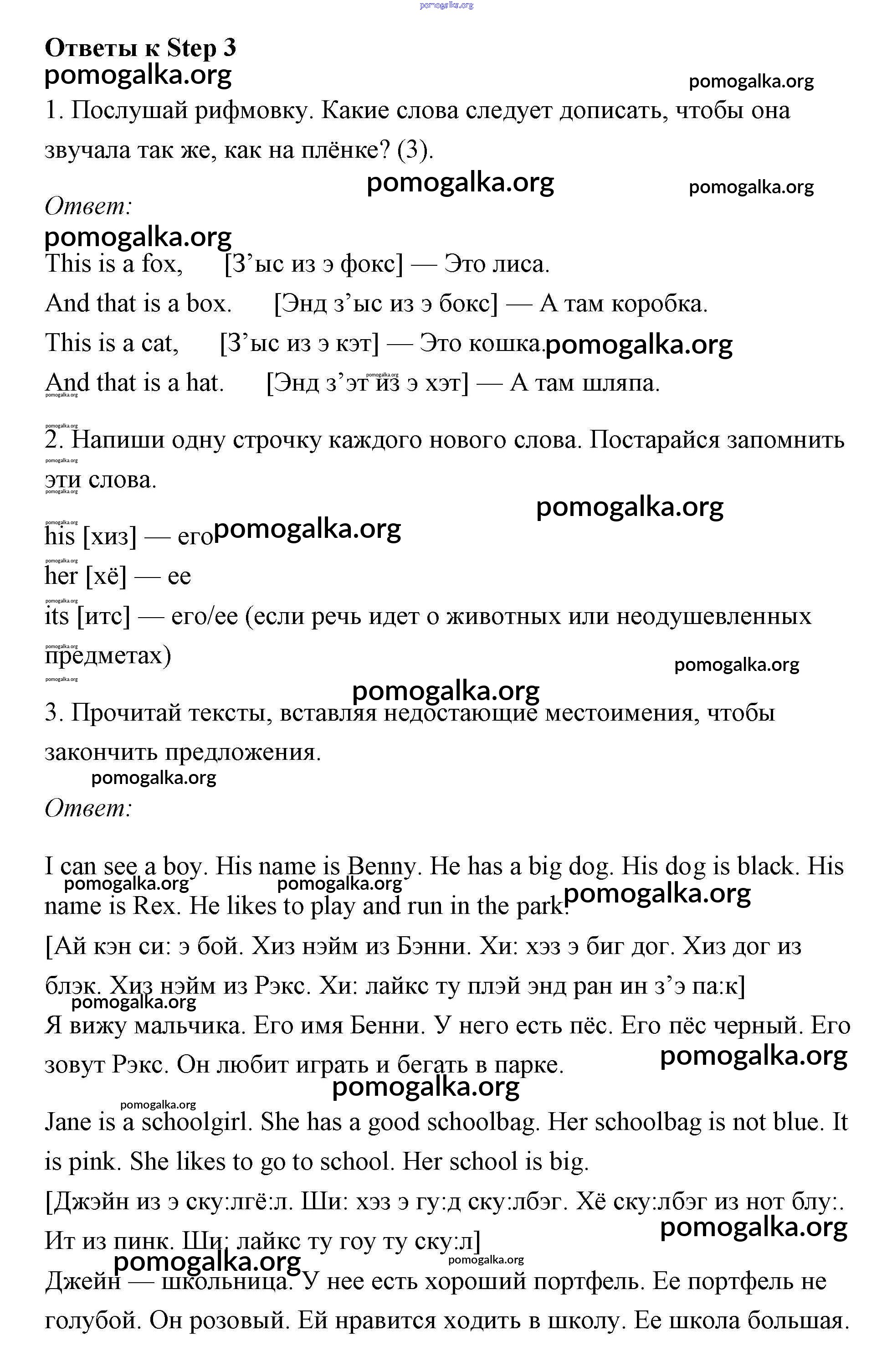 Готовые ответы - Английский язык 3 класс Афанасьева рабочая тетрадь Rainbow - unit 1 (step) Step 3