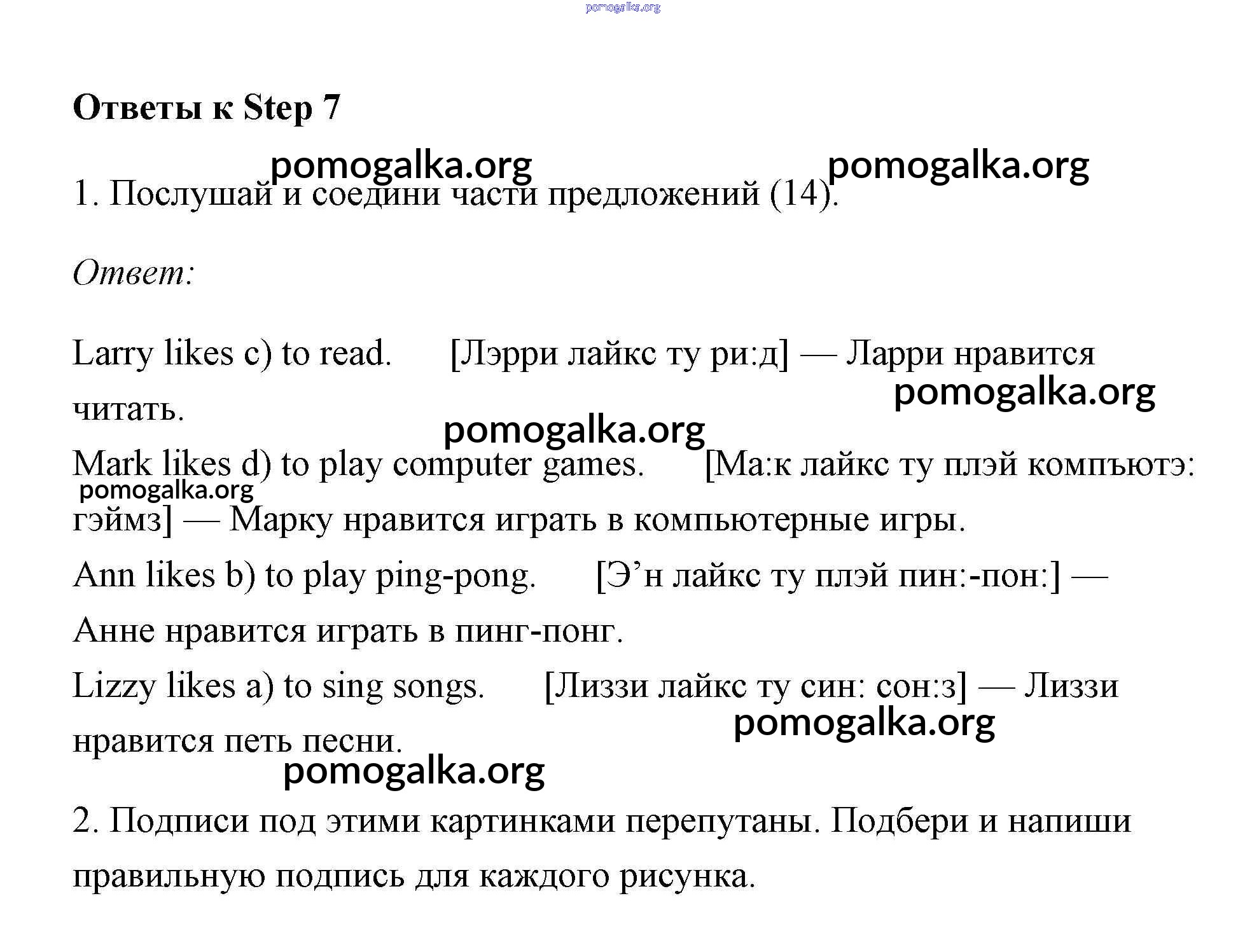 Готовые ответы - Английский язык 3 класс Афанасьева рабочая тетрадь Rainbow - unit 2 (step) Step 7
