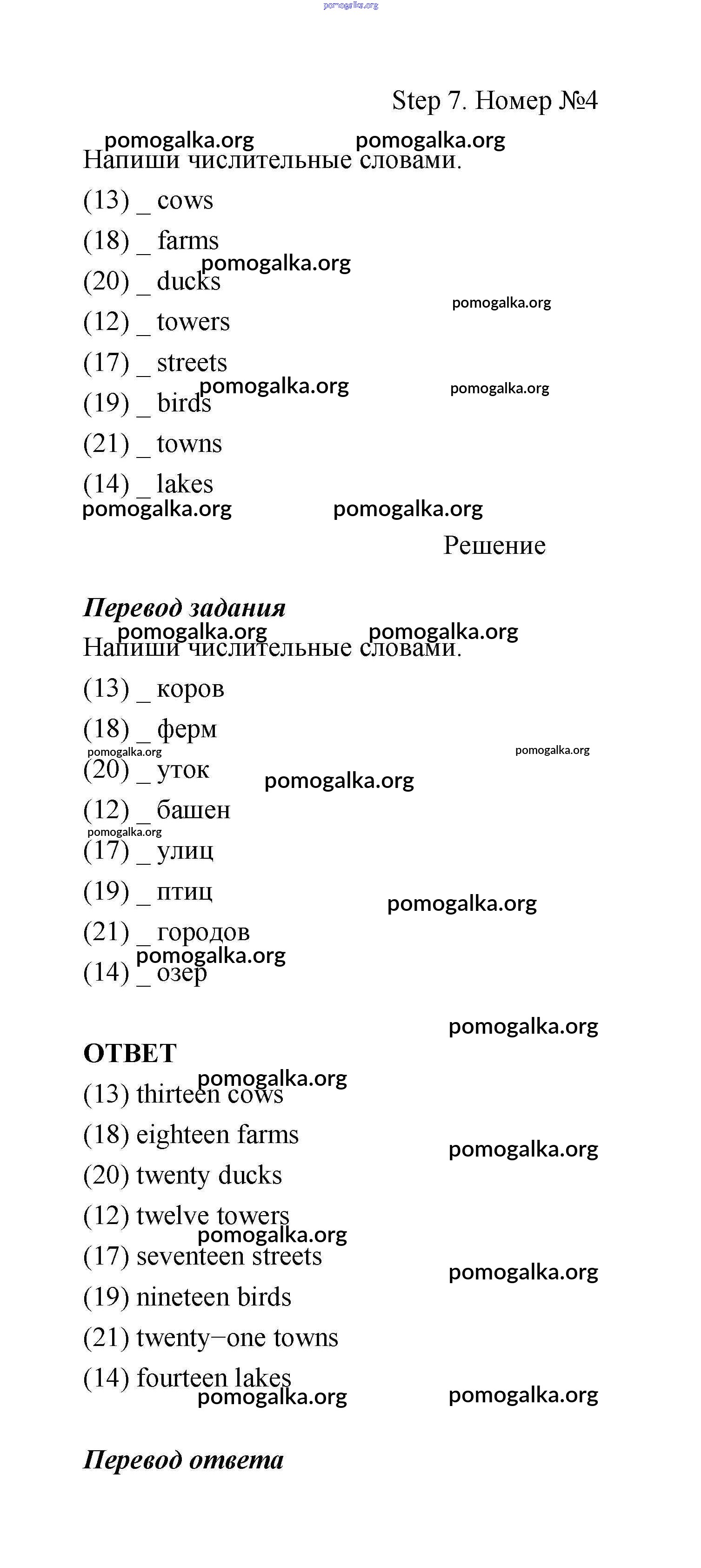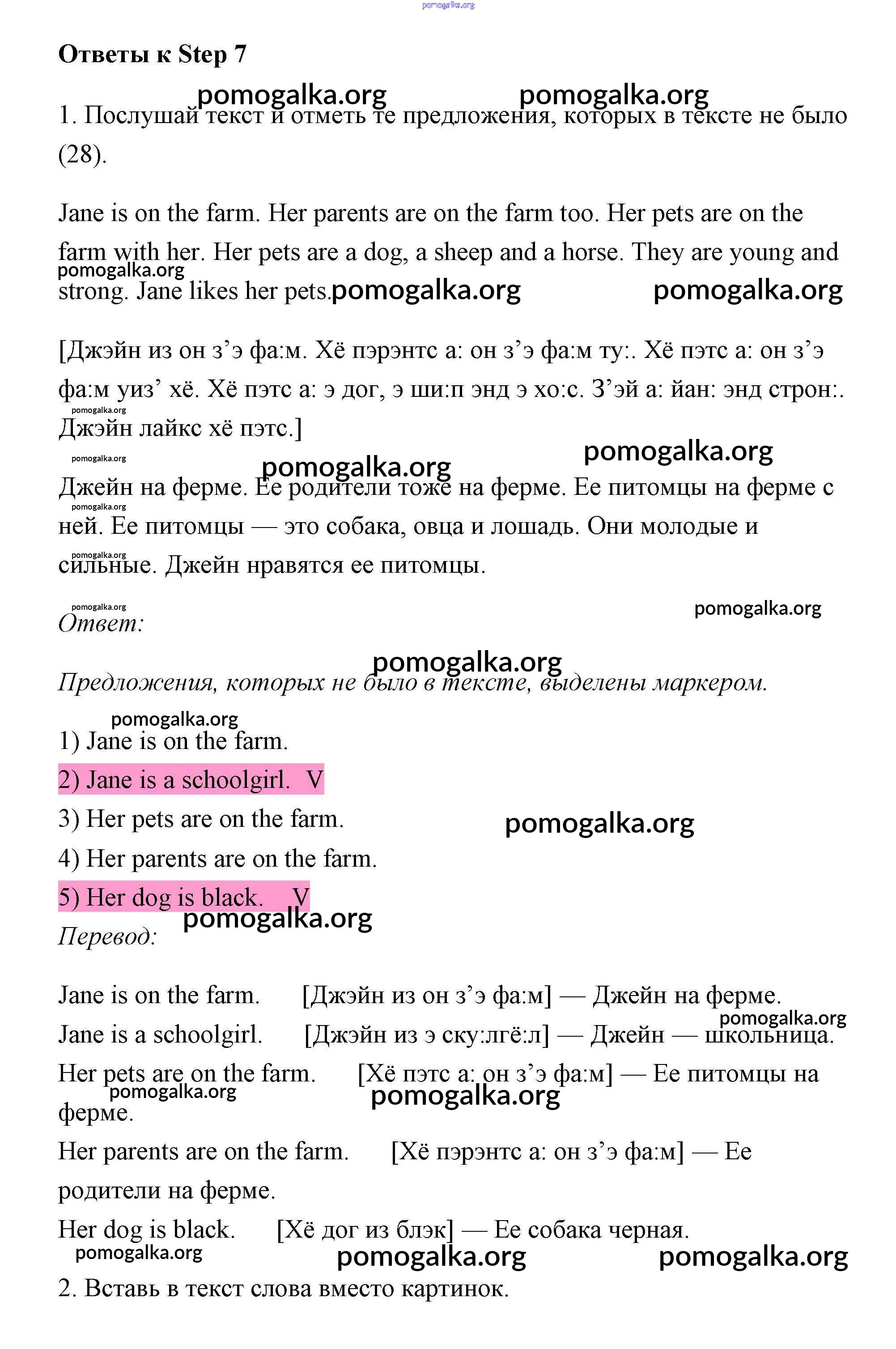 Готовые ответы - Английский язык 3 класс Афанасьева рабочая тетрадь Rainbow - unit 4 (step) Step 7