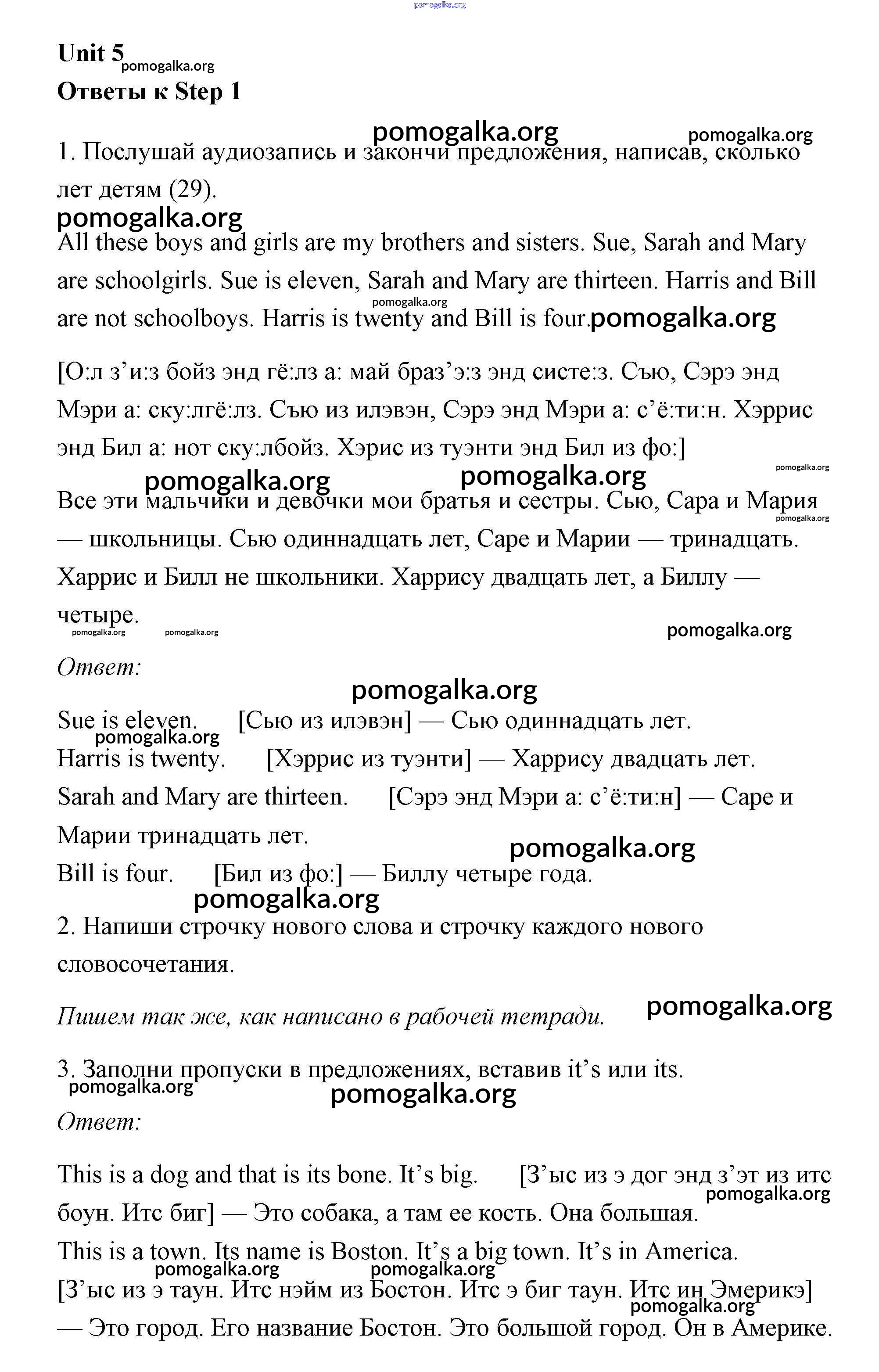 Готовые ответы - Английский язык 3 класс Афанасьева рабочая тетрадь Rainbow - unit 5 (step) Step 1