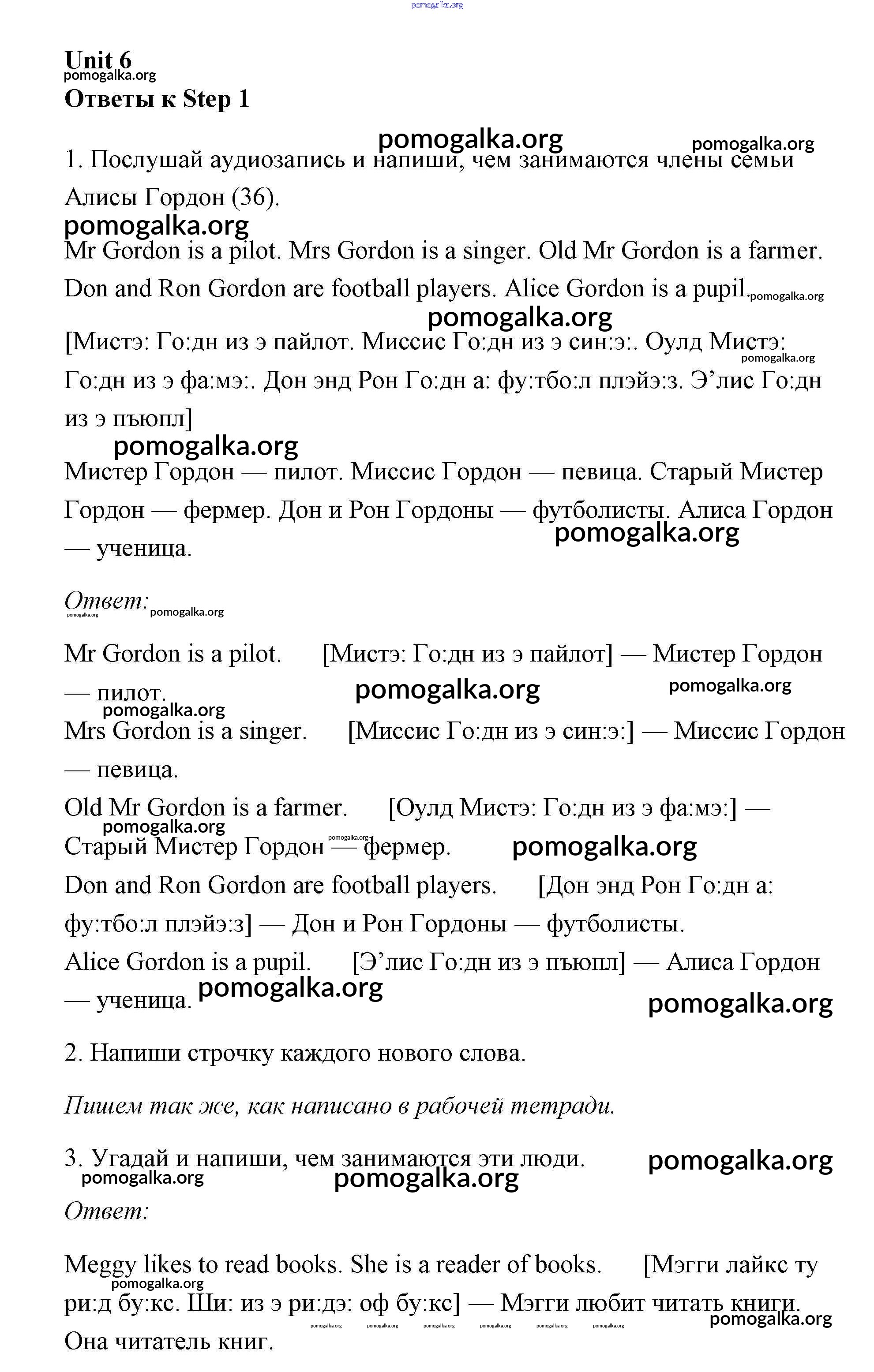 Готовые ответы - Английский язык 3 класс Афанасьева рабочая тетрадь Rainbow - unit 6 (step) Step 1
