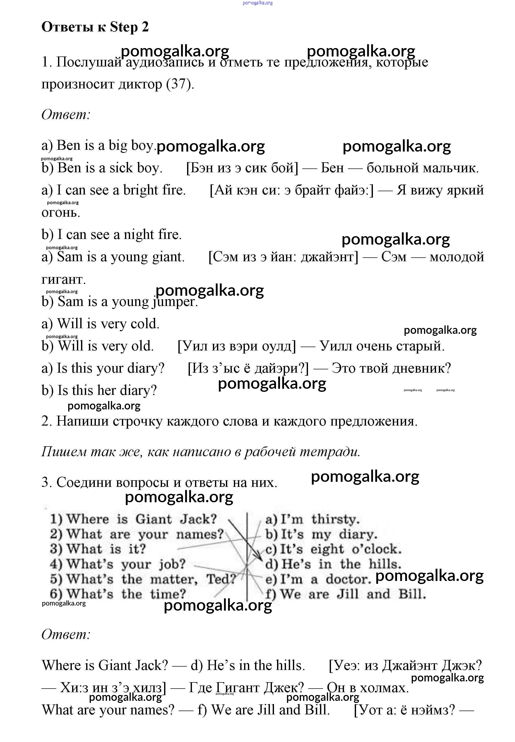 Готовые ответы - Английский язык 3 класс Афанасьева рабочая тетрадь Rainbow - unit 6 (step) Step 2