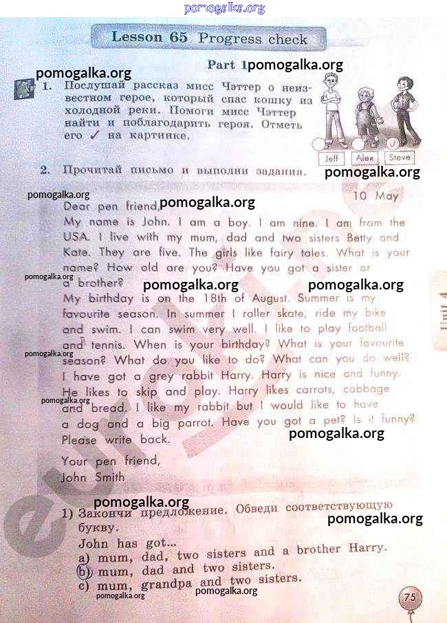 Готовые ответы - Английский язык 3 класс рабочая тетрадь Биболетова - страница 75