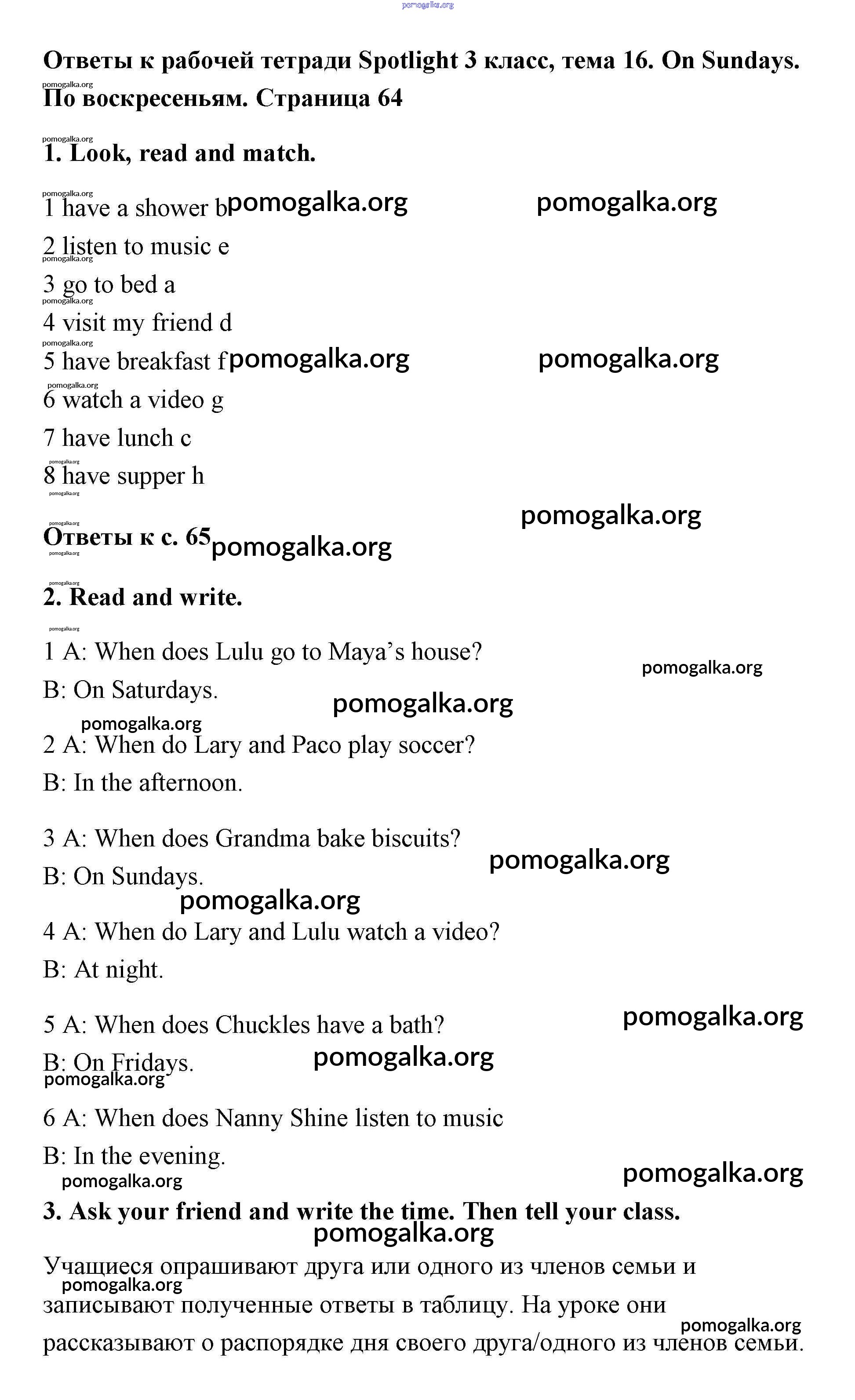 Готовые ответы - Английский язык 3 класс Быкова (рабочая тетрадь) - страница 64-65