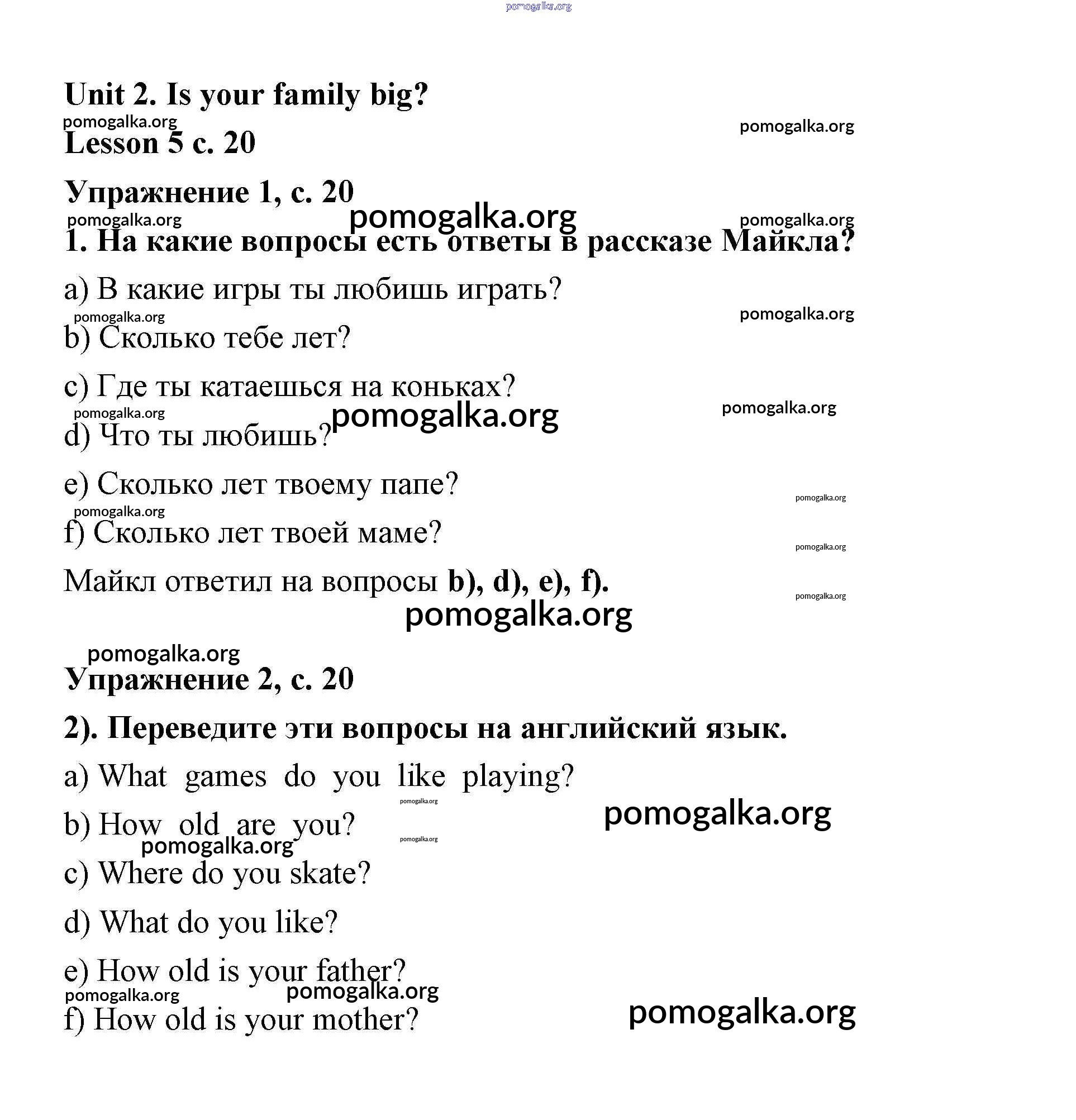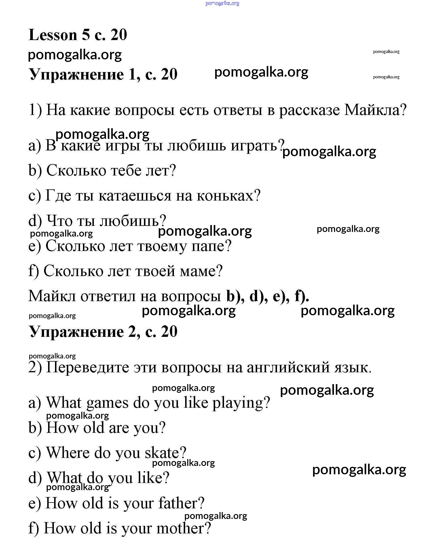 Готовые ответы - Английский язык 3 класс Кузовлёв (рабочая тетрадь) - unit 2 (lesson) Lesson 5 (страница 20)