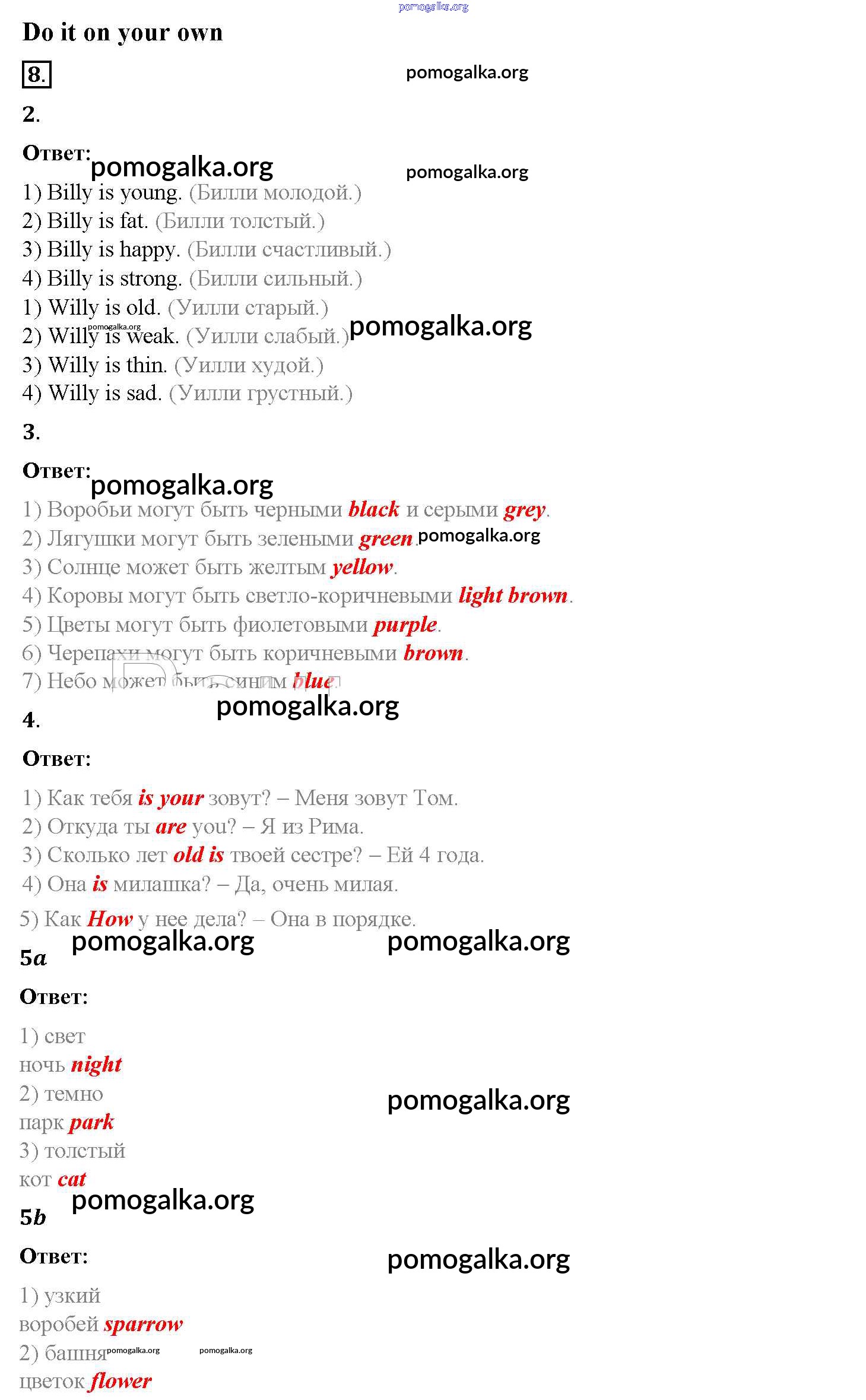 Готовые ответы - Английский язык 3 класс Афанасьева Rainbow - step 6 unit 3 8