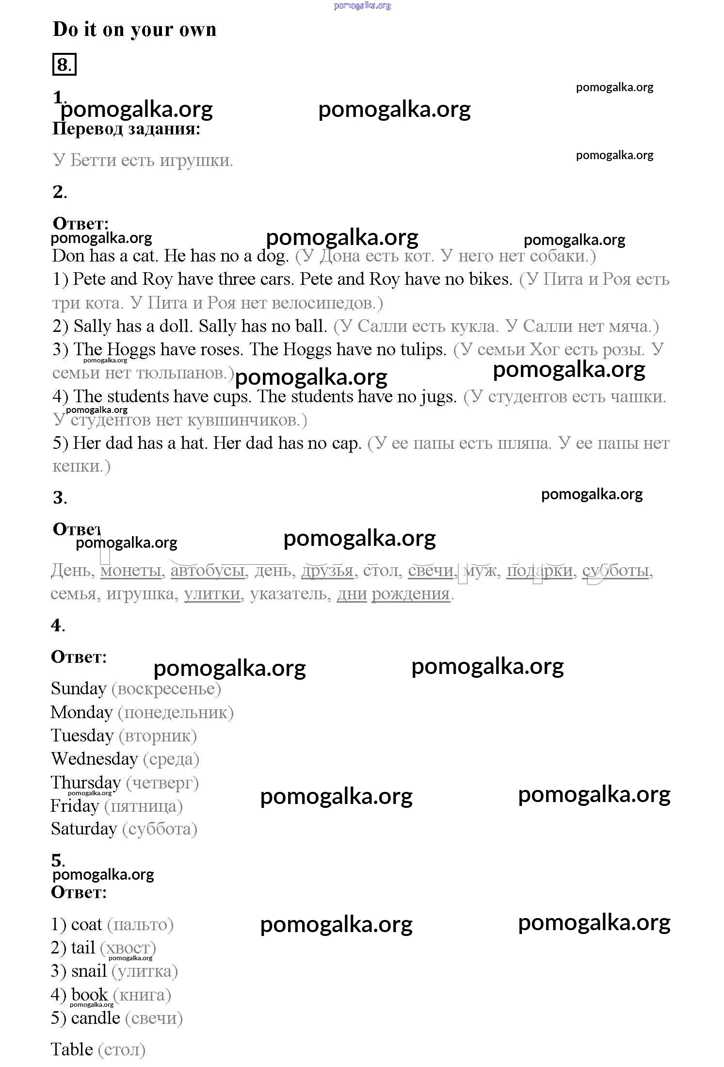 Готовые ответы - Английский язык 3 класс Афанасьева Rainbow - step 6 unit 5 8