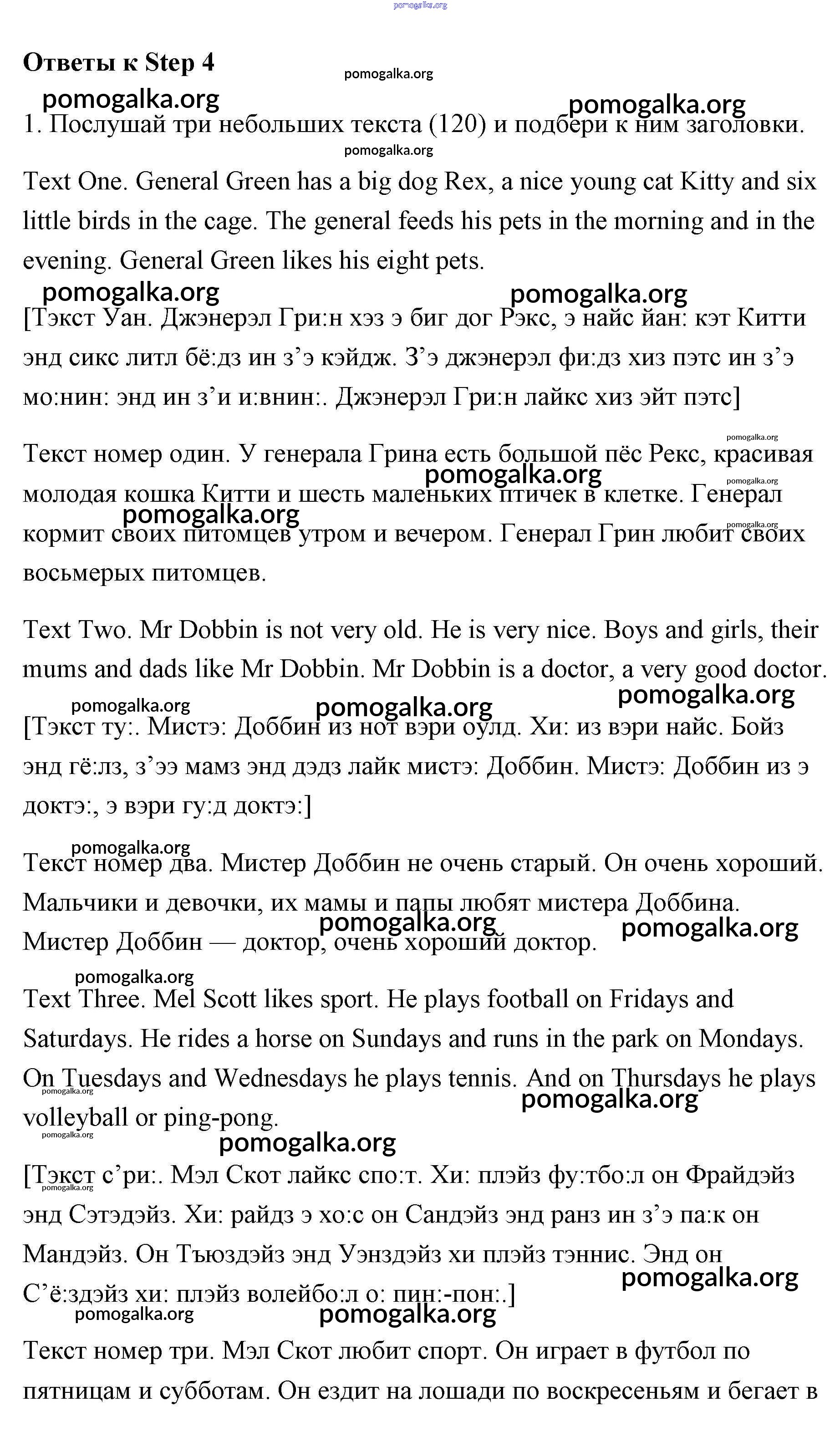 Готовые ответы - Английский язык 3 класс Афанасьева Rainbow - step 4 Unit 6 1