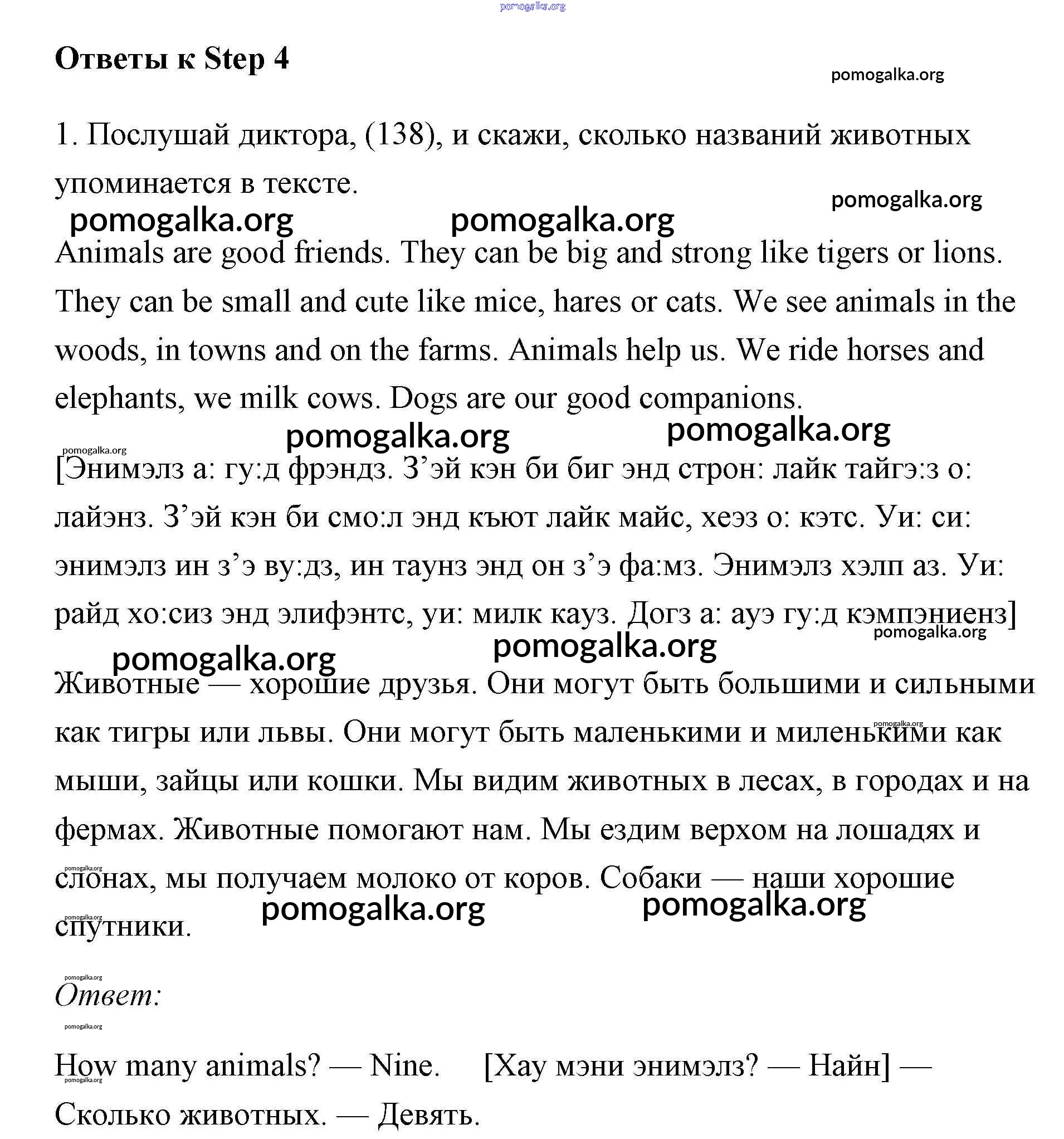 Готовые ответы - Английский язык 3 класс Афанасьева Rainbow - step 4 Unit 7 1