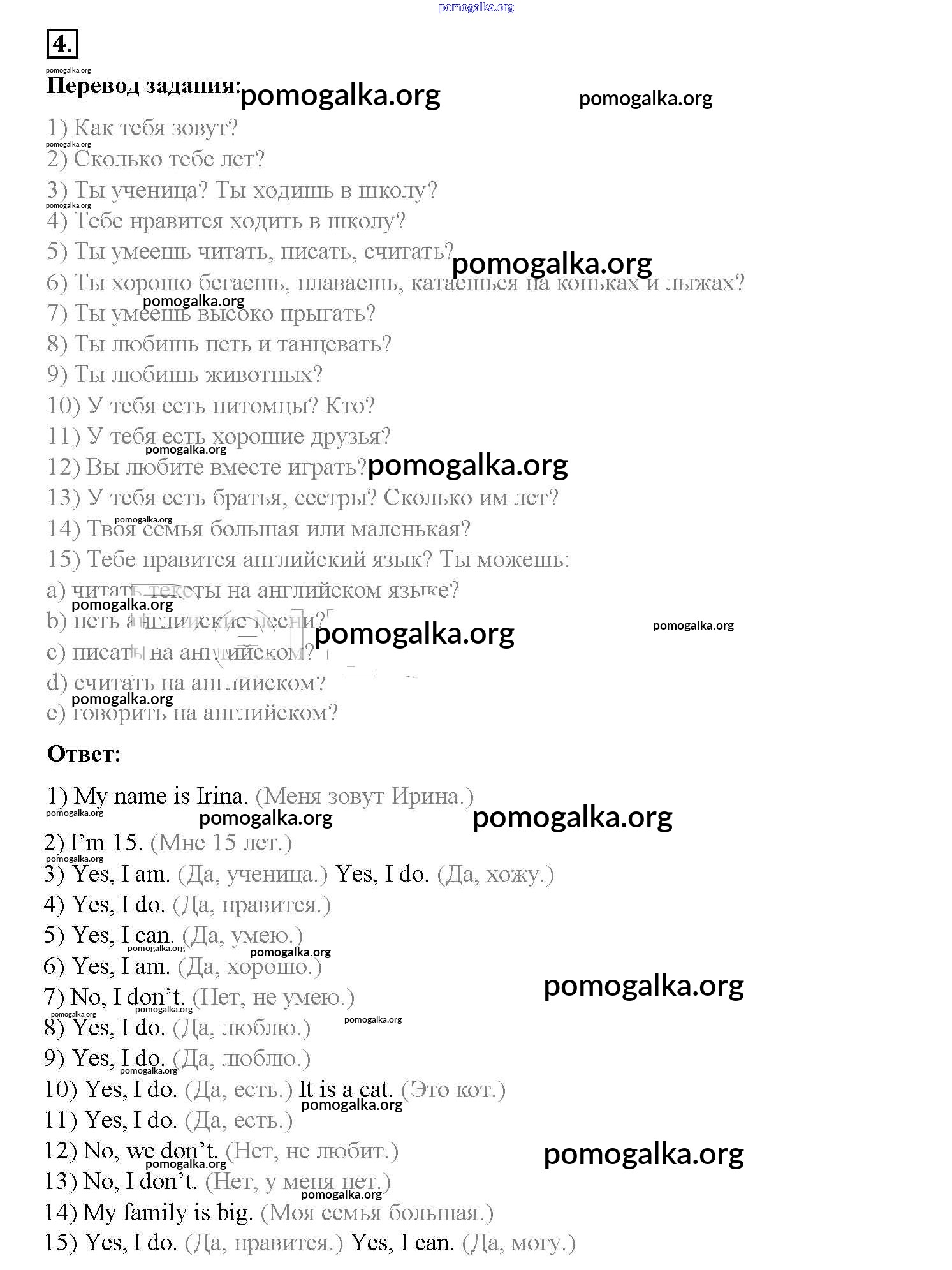 Готовые ответы - Английский язык 3 класс Афанасьева Rainbow - step 8 Unit 8 4