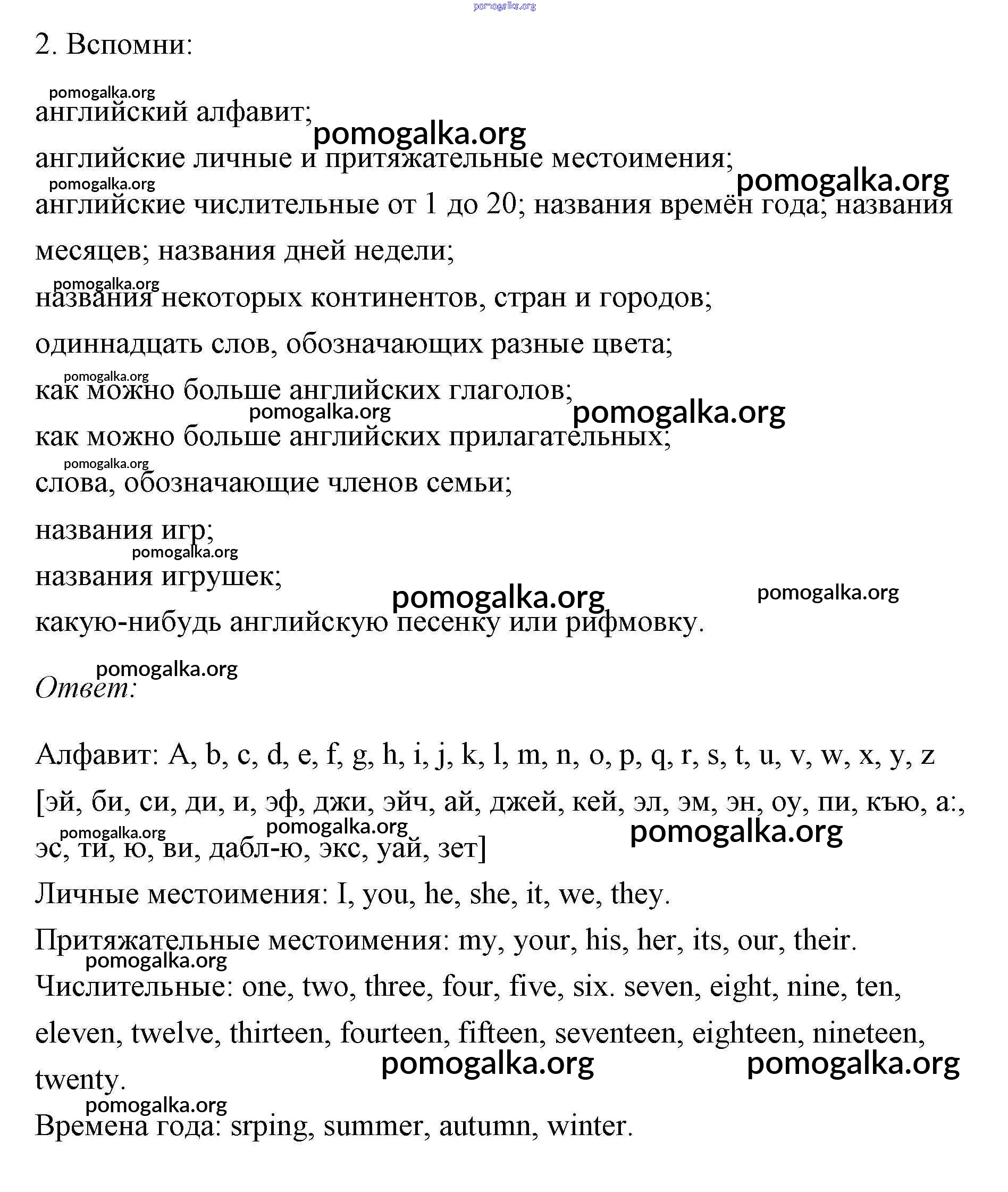 Готовые ответы - Английский язык 3 класс Афанасьева Rainbow - general summing up часть 2 2