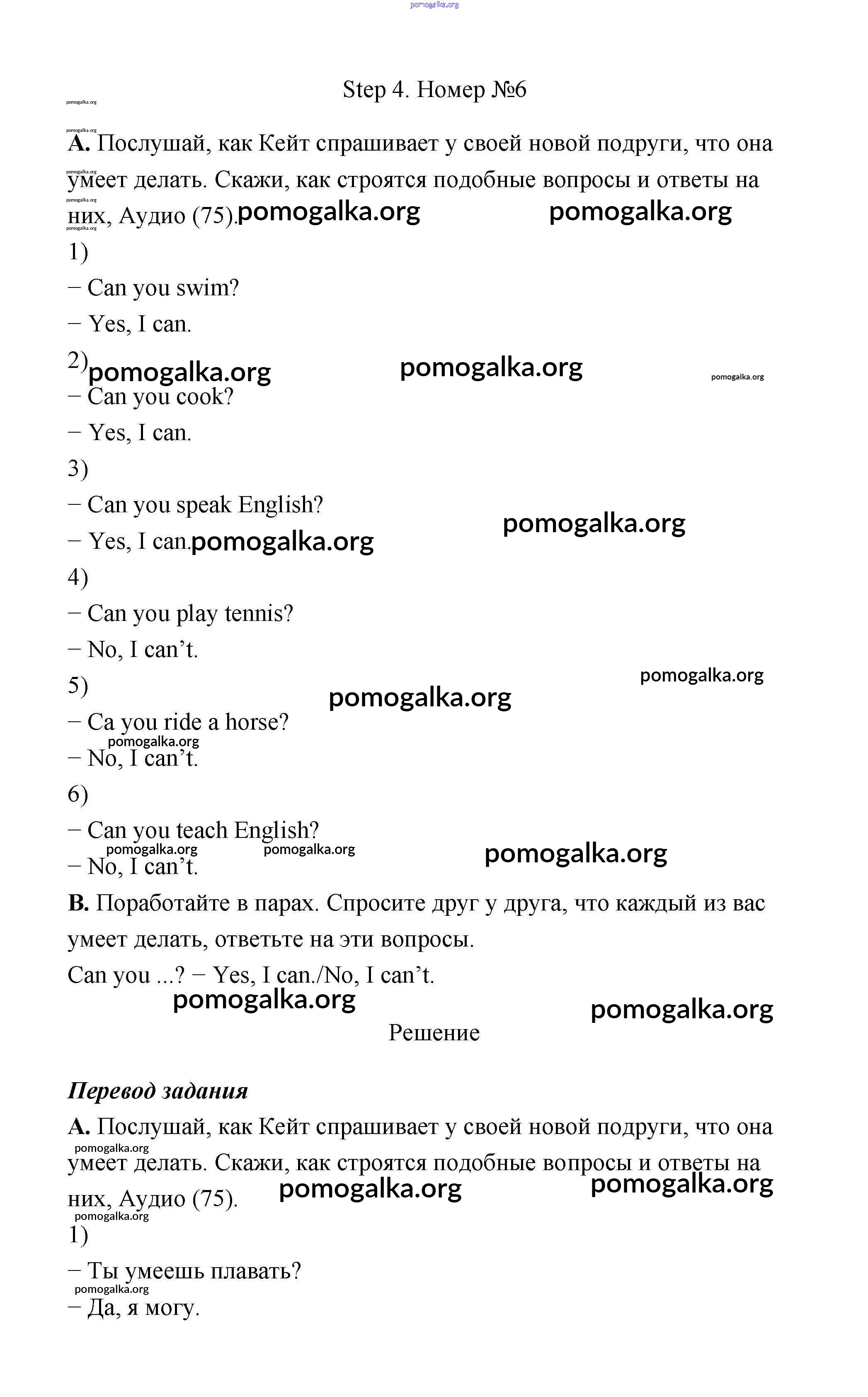 Готовые ответы - Английский язык 3 класс Афанасьева - step 4 unit 4 6