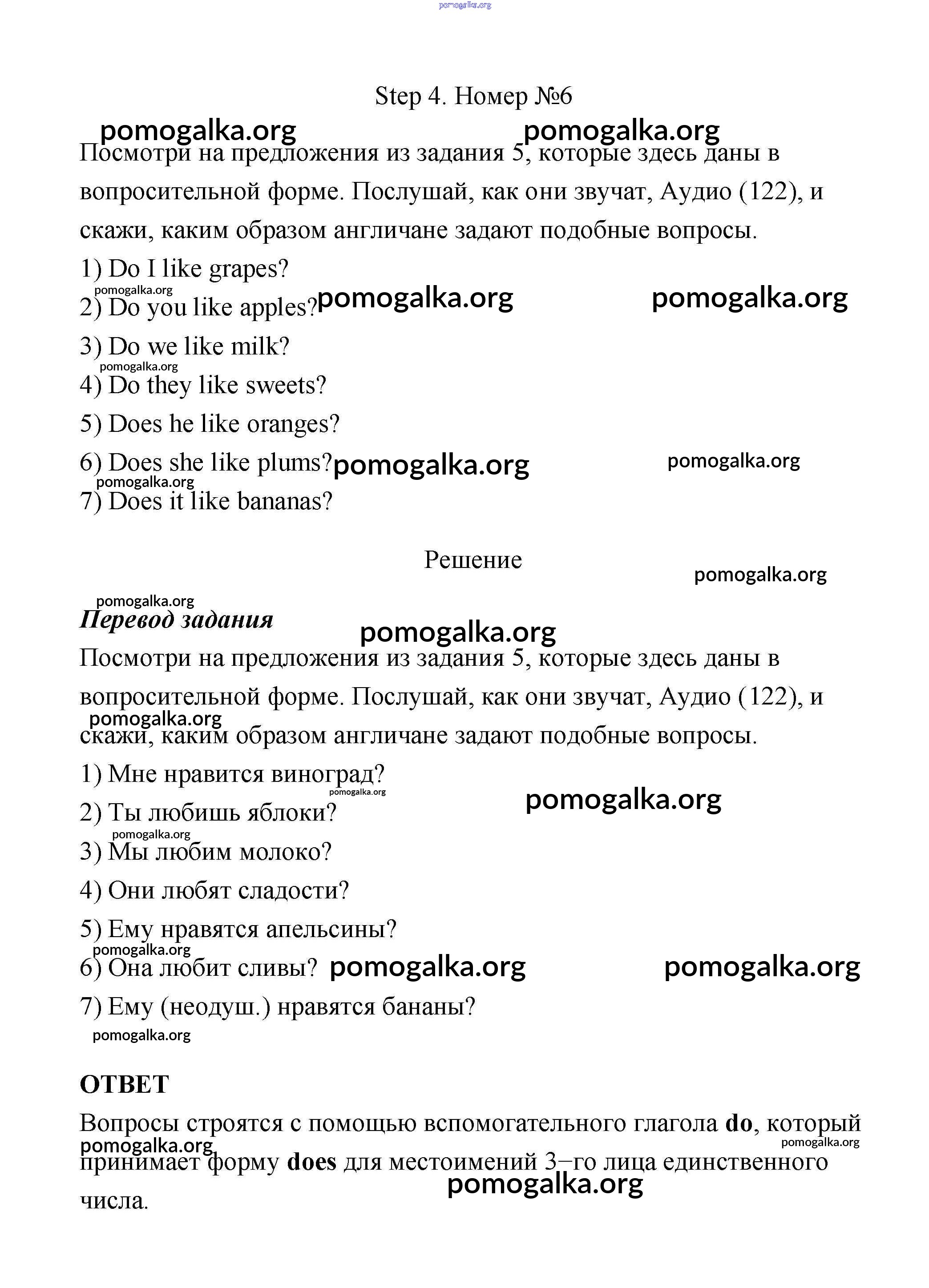 Готовые ответы - Английский язык 3 класс Афанасьева - step 4 unit 6 6