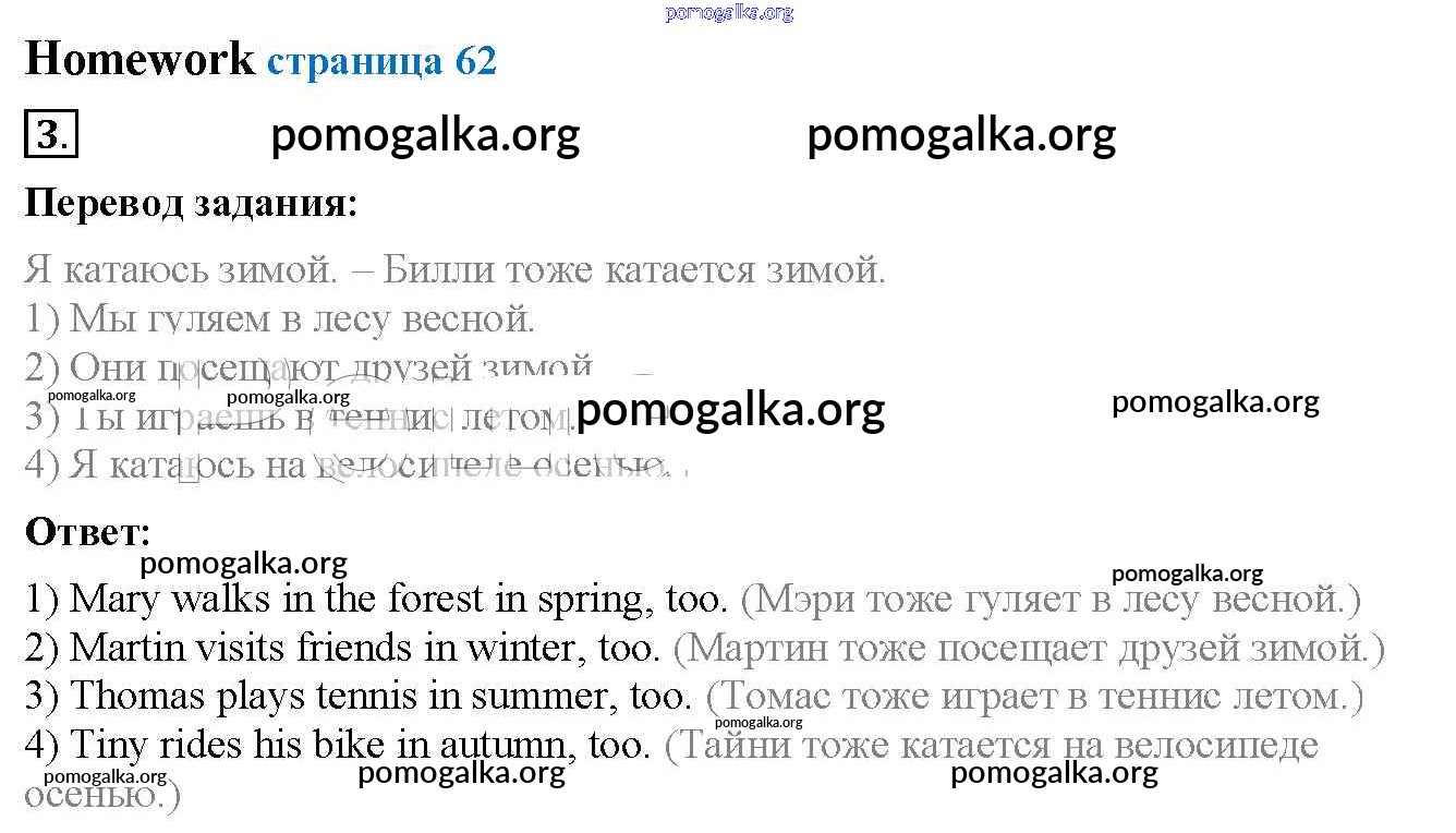 Готовые ответы - Английский язык 3 класс Биболетова - страница 62