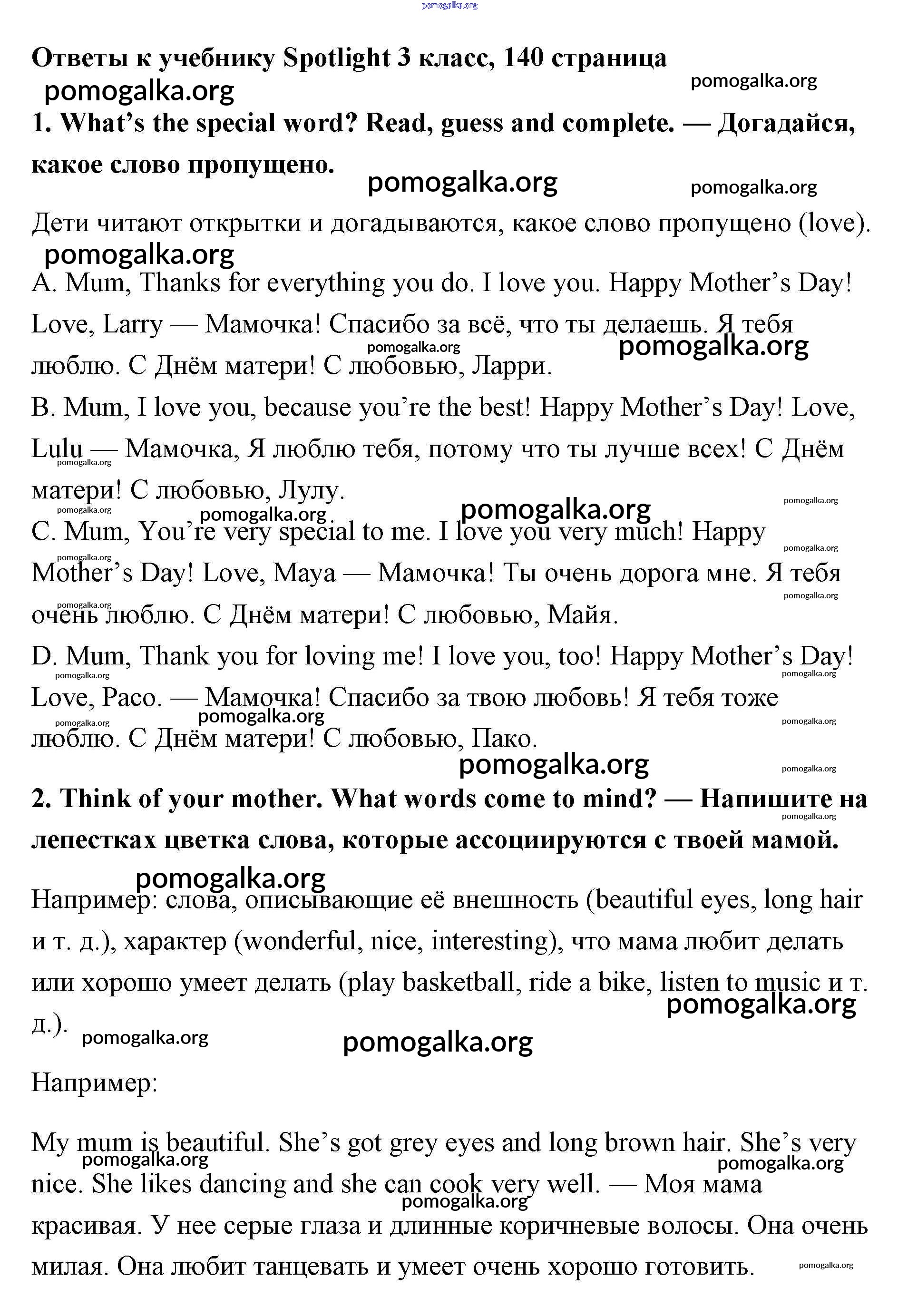 Готовые ответы - Английский язык 3 класс Быкова - страница 140