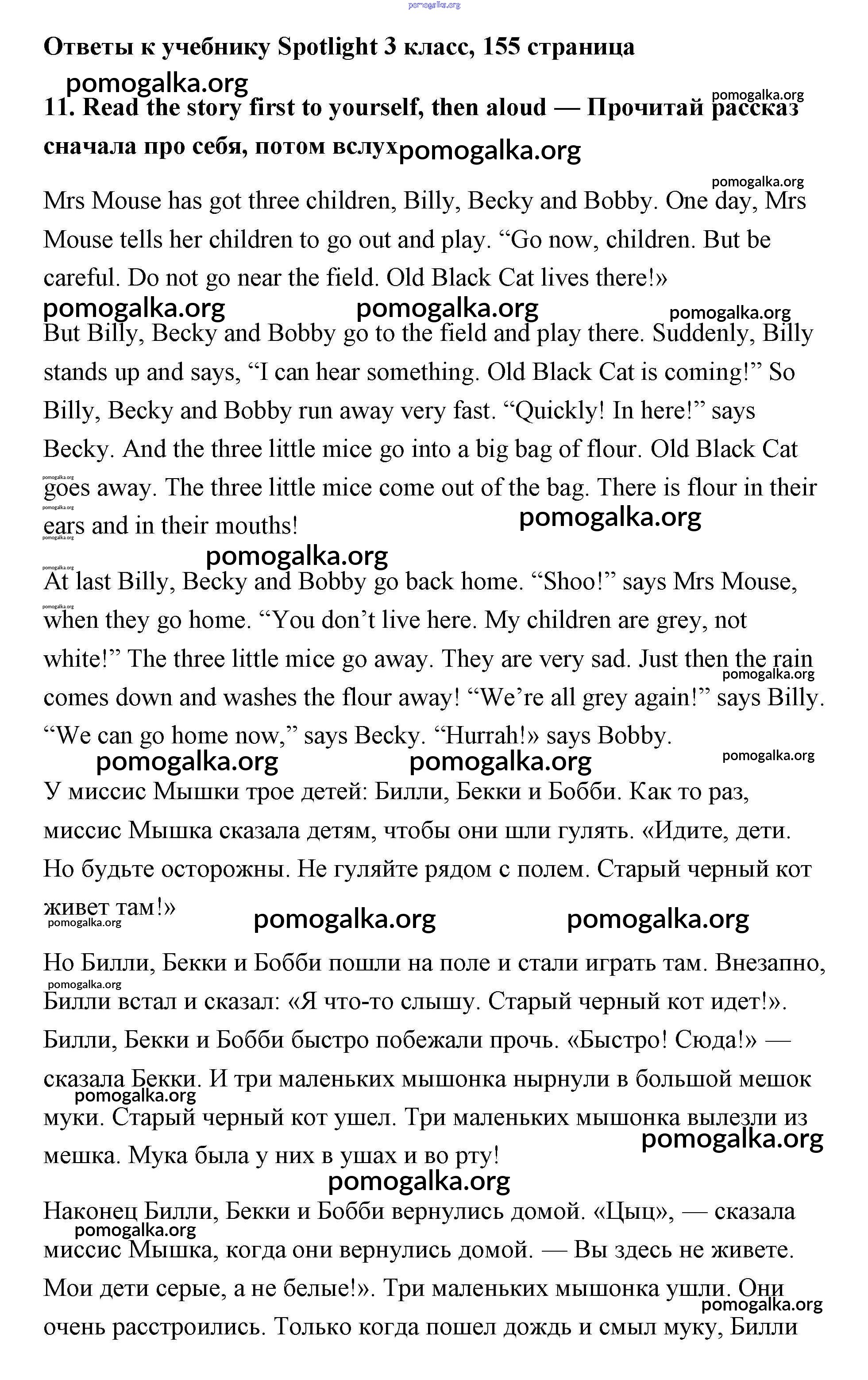 Готовые ответы - Английский язык 3 класс Быкова - страница 155